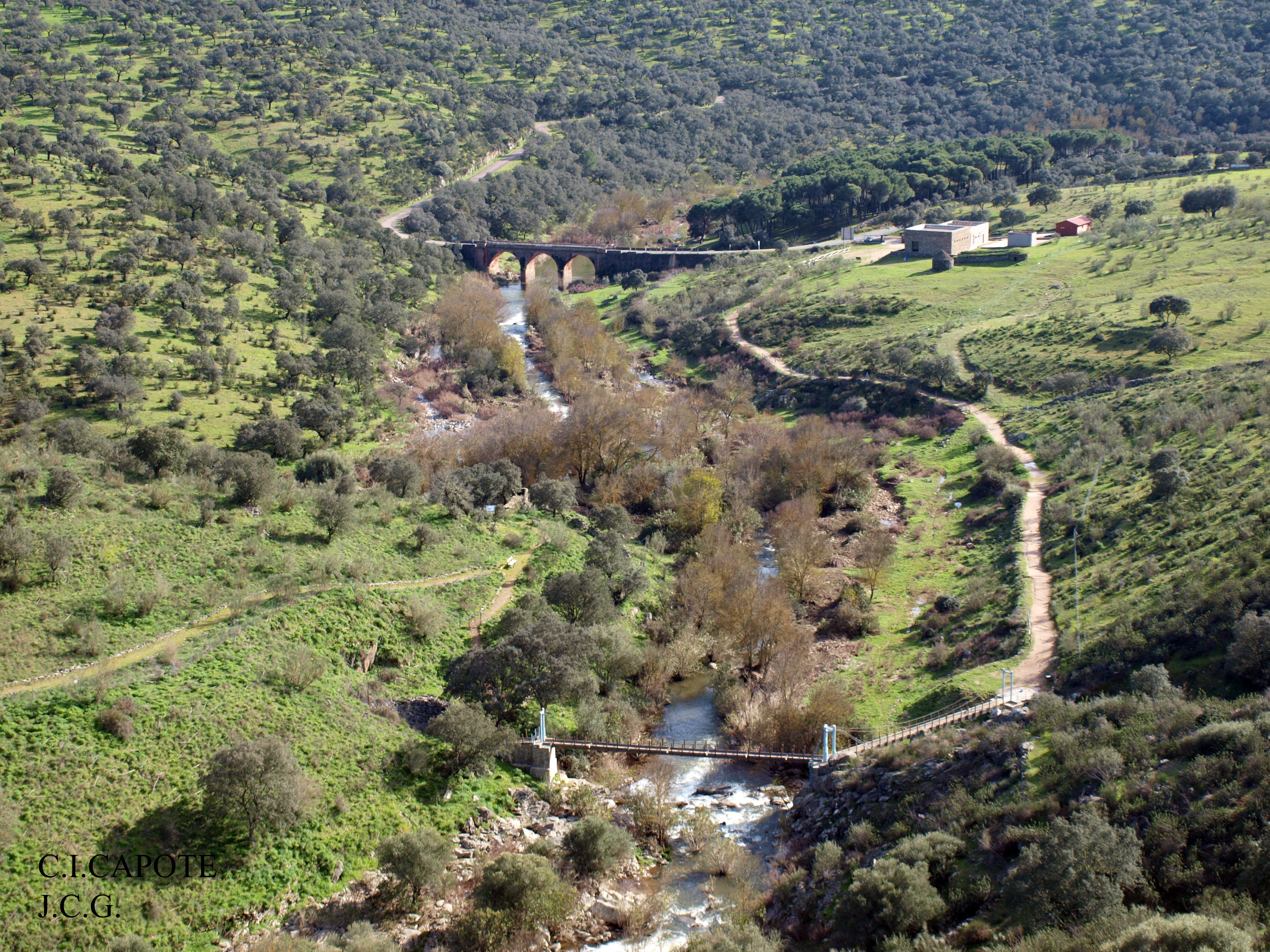 Among the most interesting tourist places in Higuera la Real, we find the Interpretation Centre and the Celtic Site of Capote. Located to the south of the village, at the confluence of the rivers Sillo and Álamo and on the limits of the Natural Park of Picos de Aroche and Sierra de Aracena, Capote is located in an area of great scenic and natural interest. In addition to the natural defensive character given by its steep slopes, other factors such as the abundance of water or its strategic position within the network of ancient communication routes between the southwest and northwest of the peninsula have made Capote an attractive place to be occupied since prehistoric times. Discovered in 1985, the exceptional state of conservation of the vestiges found has provided valuable information for the knowledge of the Pre-Roman Period in Lower Extremadura and has meant the official recognition of a Celtic horizon in our territory. The archaeological remains that we can contemplate today are dated between the 5th and 1st centuries BC, that is, in the centuries that preceded and followed the Wars of the Roman Conquest. This final phase of occupation of the place is the most representative and the one that has endowed the Castrejón de Capote with a singular importance. The set of most spectacular remains is formed by constructions of defensive character, like the main door, formed by towers and bastions that reached the nine meters of height. From it, along its ends, lines of walls emerge that run along the peninsula on the limits of the precipice, with towers located at certain strategic points. The interior of the village is articulated around a central street that forks into a "Y" shape towards the western end and is complemented by streets and alleys. In these streets you can see the structure of the houses of the village, attached to each other and in a rectangular shape. In the centre of the village, open to the central street, the Preroman Sanctuary is a key element in understanding the spiritual and religious dimension of the Celts.The discovery of a votive deposit of sacred Roman images next to the main door is also important.