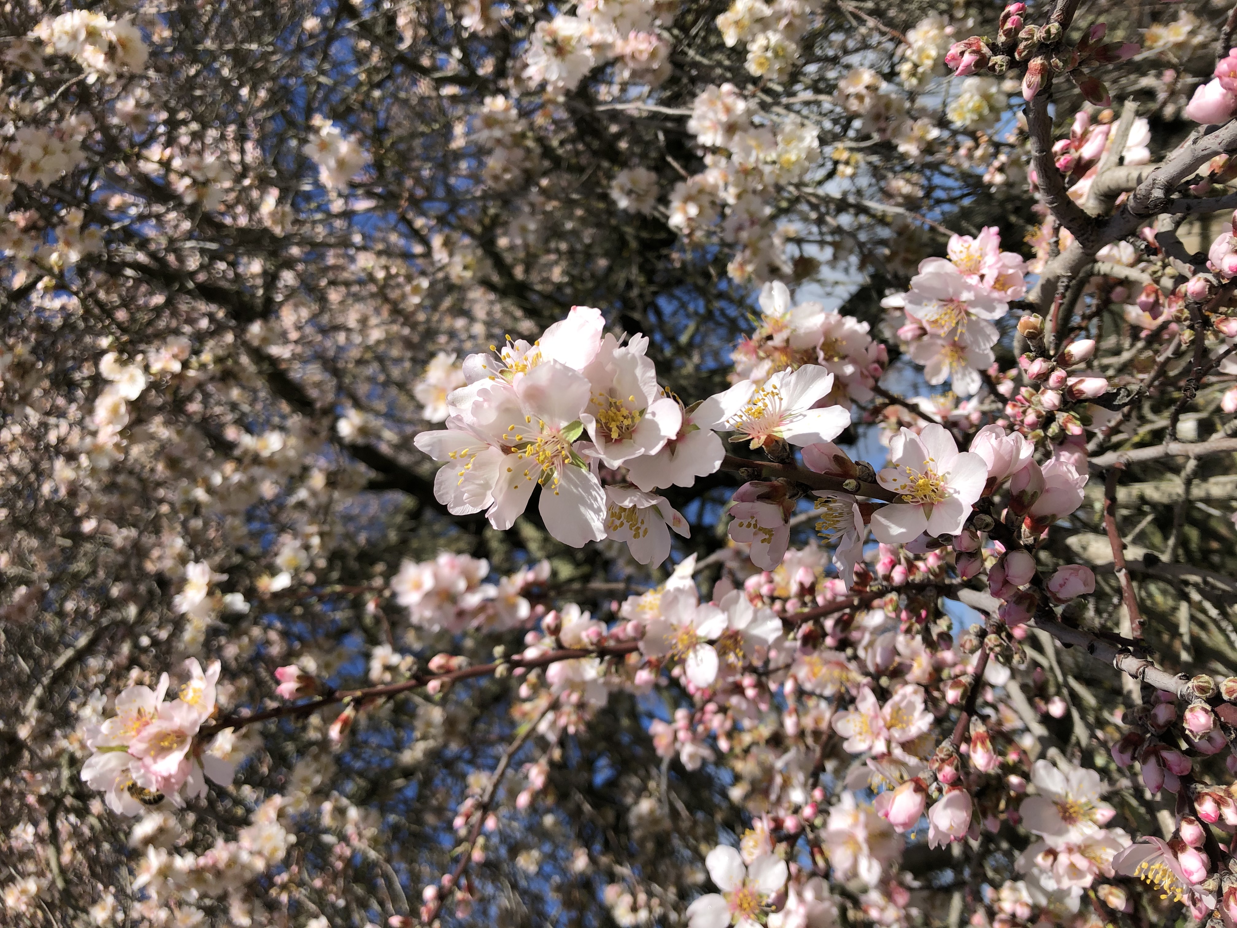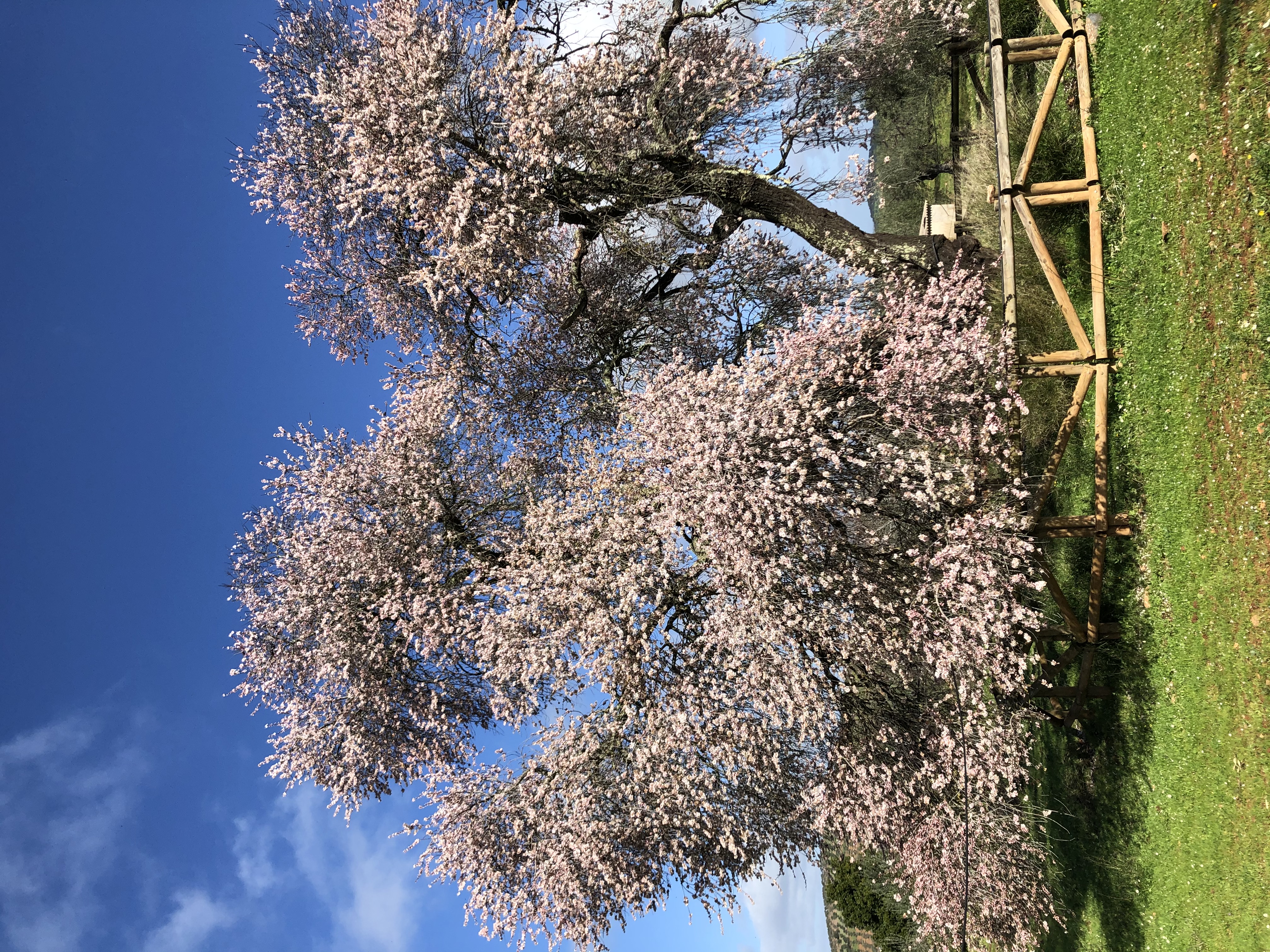 Fue declarado Árbol Singular en 2014. Presenta un perímetro de tronco a 1,30 m de altura de 2,67 m, una altura total 12 m y un diámetro de copa de 15,50 m. No cabe duda que la floración es el momento cumbre para la contemplación de este ejemplar. Entonces, durante unos 10 días, el árbol aparece completamente cubierto de flores blanco rosadas. La fecha de floración dependerá de la climatología anual, suele oscilar entre primeros y mediados de febrero, aunque su duración se puede ver reducida por los vientos y las lluvias.