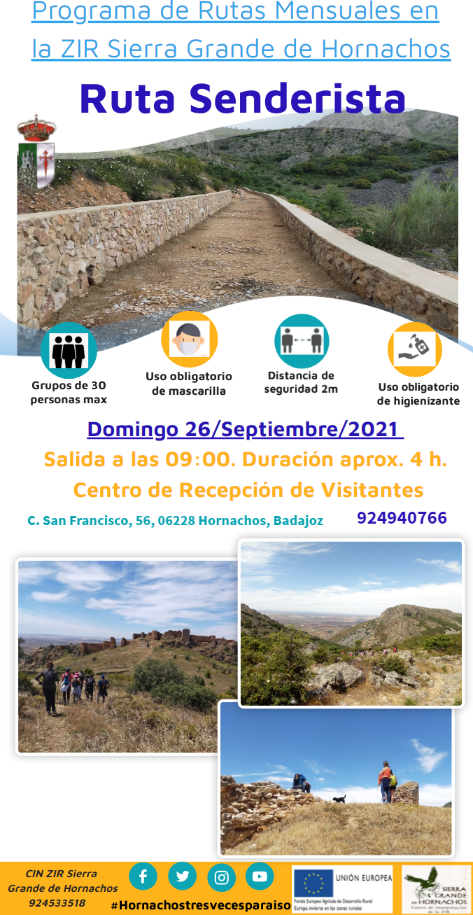 Imagen principal Tipo Evento Punto de Ruta Fecha y hora inicio Dom, 26/09/2021 - 09:00 Municipio Hornachos Descripción Ruta Senderista de 13 km por la Sierra Grande de Hornachos. Volver