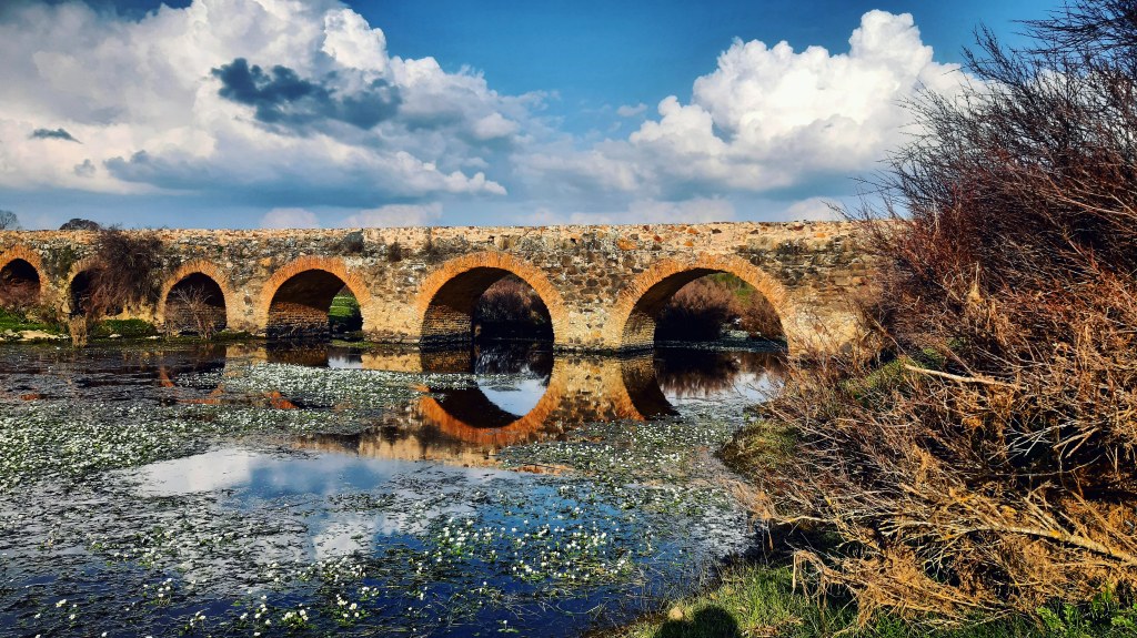 El “Puente Viejo” es un puente medieval situado sobre el arroyo de Pelochejo en un bucólico paraje en el camino de la Calatraveña. Tiene ocho arcos de medio punto de tamaño descendente y dos tajamares triangulares bastante agudos. Los arcos y el intradós son de ladrillo y el resto es de mampostería de pizarra y mortero. Aunque ha perdido parte del pretil, conserva la calzada empedrada con rollos del río y todavía se usa como paso de ganado.