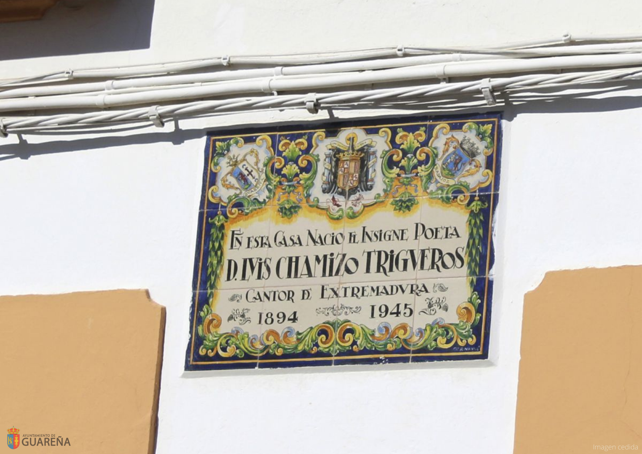 Una placa de cerámica indica que en la casa nació el poeta Don Luis Chamizo Trigueros.