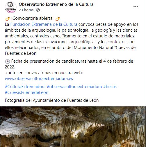 #CulturaExtremadura #observaculturaextremadura #becas #CuevasFuentedeLeón