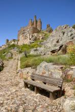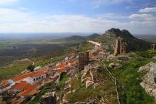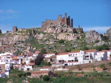 Dominando el pueblo se alza el castillo, obra árabe de adobe posteriormente rehecha en piedra por los caballeros de Alcántara. De su imponente estructura sólo se conservan algunos maltrechos restos en creciente proceso de deterioro, compuestos por los lienzos en que rematan los impresionantes farallones rocosos que constituyen su mejor defensa, y parte de los viejos cubos y dependencias. En el patio de armas, amplio y de fuerte desnivel, perduran también aljibes y mazmorras. El castillo constituye una atalaya formidable, desde la que se dominan impresionantes panorámicas paisajísticas de enorme grandiosidad y belleza.