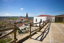Se sitúa en el borde septentrional de la Sierra, a mitad de camino entre Zafra y Jerez de los Caballeros, al abrigo de su poderoso castillo. Inmediato a la población, en un paraje de gran belleza natural, se encuentra un puente medieval de tres arcos, y en la dirección contraria la albuera erigida en el siglo XVIII por el obispo de Badajoz, Merino Malaguilla.