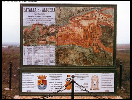 Expuesto en el Mirador del "Chaparral", fue construido en 1.997 de mampostería y azulejos pintados a mano. refleja el campo donde se dio el enfrentamiento, la disposición de los distintos ejércitos contendientes y las muchas bajas que se dieron en la batalla. Está situado en la zona donde se instaló el puesto de mando del ejército francés, en lo alto de una colina, de manera que el visitante puede estar observando el plano de la batalla en el mural, a la vez que está viendo el territorio propio de ésta en los campos de La Albuera.