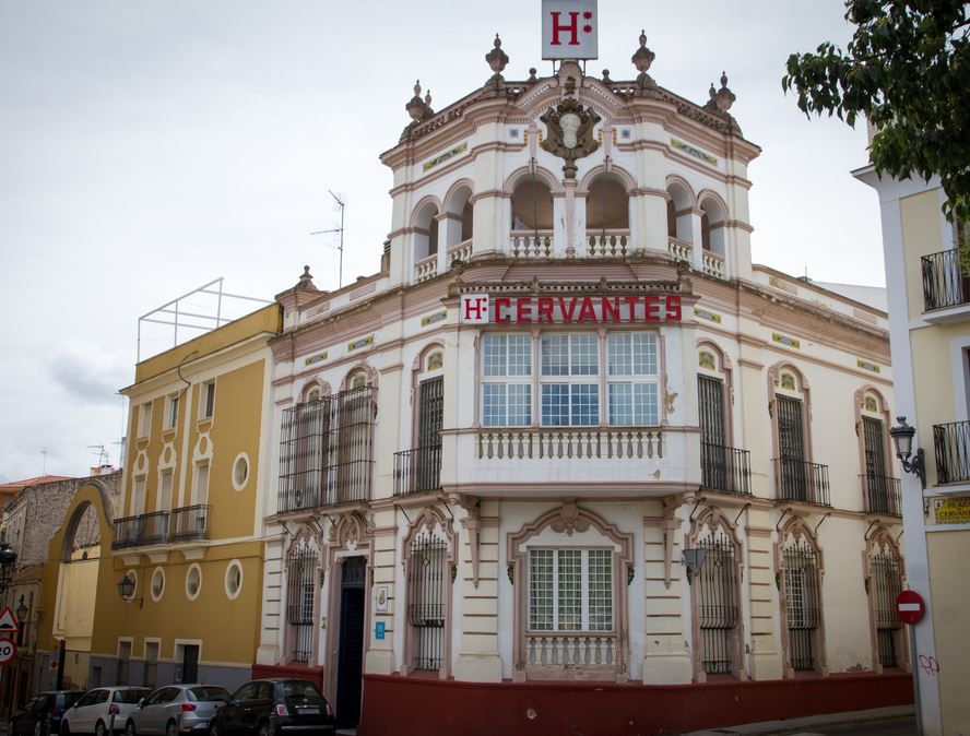 El edificio que es hoy el Hotel Cervantes fue mandado construir en 1920, atribuyéndose la obra una vez más al genial Adel Pinna, aunque es firmada por el técnico Florencio Ger. Estamos ante un nuevo ejemplo de estilo ecléctico con elementos neohistoricistas del regionalismo andaluz y toques modernistas.