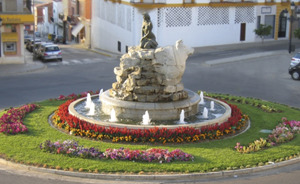 Obra realizada por el autor José Antonio González López-Arza, escultor nacido en Cabeza del Buey. Fue inaugurada el día 27 de Septiembre de 1986, día de la patrona de la localidad, la Virgen de Belén, con la entrada al pueblo. El conjunto está formado por dos cuerpos circulares concéntricos de granito que rodean la parte escultórica, compuesta por una figura de mujer en bronce, conocida popularmente como “La Jacinta”, sobre una gran roca de granito de la que mana cascadas de agua. A ambos lados de esta roca hay, también, dos figuras de granito, que son los emblemas que aparecen en el escudo de la villa: la cruz de Alcántara y una cabeza de un buey. La figura de mujer, símbolo de la villa, es la representación antropomórfica de la madre naturaleza. Las figuras en granito representan los emblemas del escudo del pueblo. Las cascadas de agua simbolizan la fuente de la vida, una vida agrícola y ganadera, principales actividades económicas de la localidad.