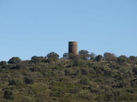 Se encuentra junto a San Jorge de Alor, en una elevación de 384m, entre las coordenadas: 7º,3´,35¨W y 38º,39´,30¨N. El estado actual de la misma es de ruina. En efecto, todo el lado norte tiene abierto un gran boquete casi hasta su parte superior. El origen del boquete se debe a que seguramente en época moderna se le practicó a la atalaya un agujero para acceder a su interior, el cual se ha ido agrandando. El hecho de que formen parte del patrimonio, pero se encuentren en terreno privado, ha hecho que caigan en abandono. Esto es aquí bastante penoso, ya que se trata de la atalaya más alta que se conserva; desapareciendo en el futuro si no se pone remedio, como ya ha ocurrido con otras.