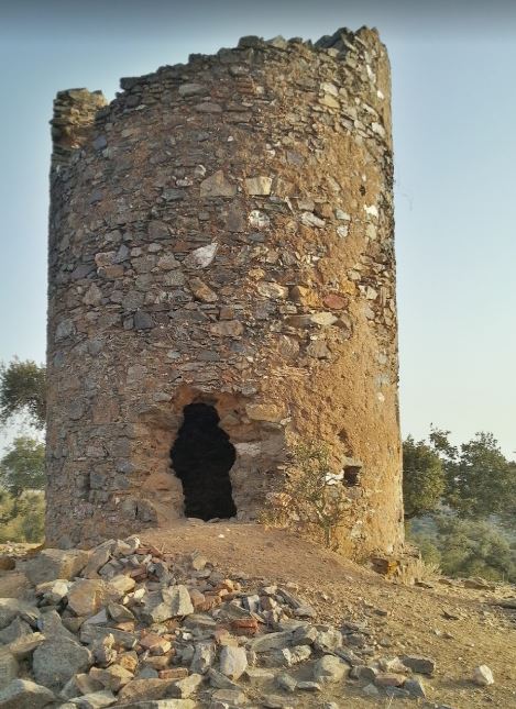 Al Este de Olivenza. Se encuentra en una pequeña elevación del mismo nombre, a 270 m. de altura y coordenadas: 7°, 10’, 25’’Wy38°,40’,00’’N. Es una atalaya con el nivel superior semiderruido, de unos 9 metros de altura total actualmente, y 14 metros de diámetro. Las cámaras tienen una altura de 3 metros, siendo la pared de 70 cm. de grosor. El paso del segundo al tercer nivel se hace por una escalera que conserva 5 peldaños y medio y arranca del nivel de la chimenea. En general su estructura y elementos son iguales a los del resto de atalayas del término