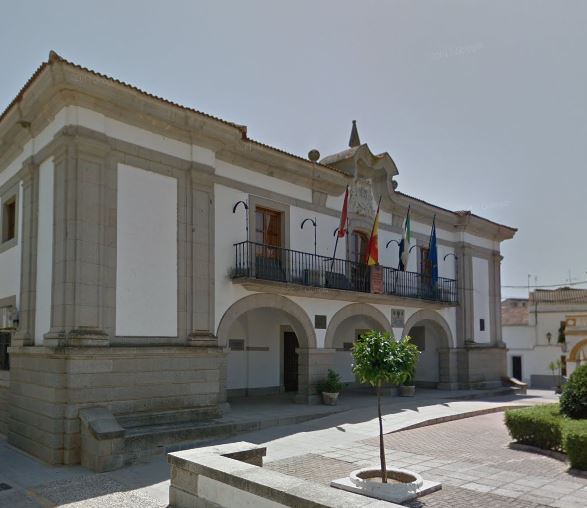 El edificio, levantado al tiempo que ella y remodelado luego en varias ocasiones, es de buena arquitectura según el modelo más característico de ese tipo de realizaciones. De porte herreriano presenta triple arquería al frente sobre pilares graníticos, balconada central y remate de cornisa con ático en el que luce el escudo de la población.