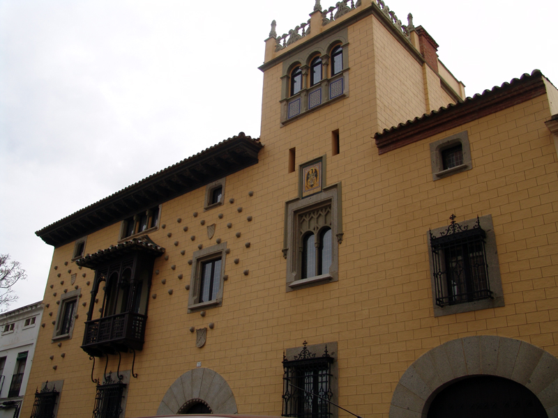 Con esta denominación se conoce en Villanueva un edificio situado en la calle Zurbarán junto al parque de la Constitución. Su terminación coincidió con el primer cuarto de nuestro siglo. Consta de dos plantas y torreón; mirador de madera con decoraciones de azulejos, al igual que la cornisa, y en el torreón, un ajimez cuyo alfiz enmarca el blasón de los Reyes Católicos en cerámica policromada. Zócalo de sillares de cantería almohadillados. Distribuidos por la fachada de la planta alta destacan los bolos esféricos de granito que dan nombre a la mansión. Sobre al arco de la puerta principal, las armas de la Casa Mendoza. Las artísticas rejas de hierro se forjaron en Villanueva y las maderas, antiguas, fueron traídas ex profeso de diversas procedencias. El palacio fue construido por el maestro de obras villanovense Don Juan Santos Sánchez, por iniciativa y siguiendo las directrices de su propietario Don Ricardo Guisado Casillas.
