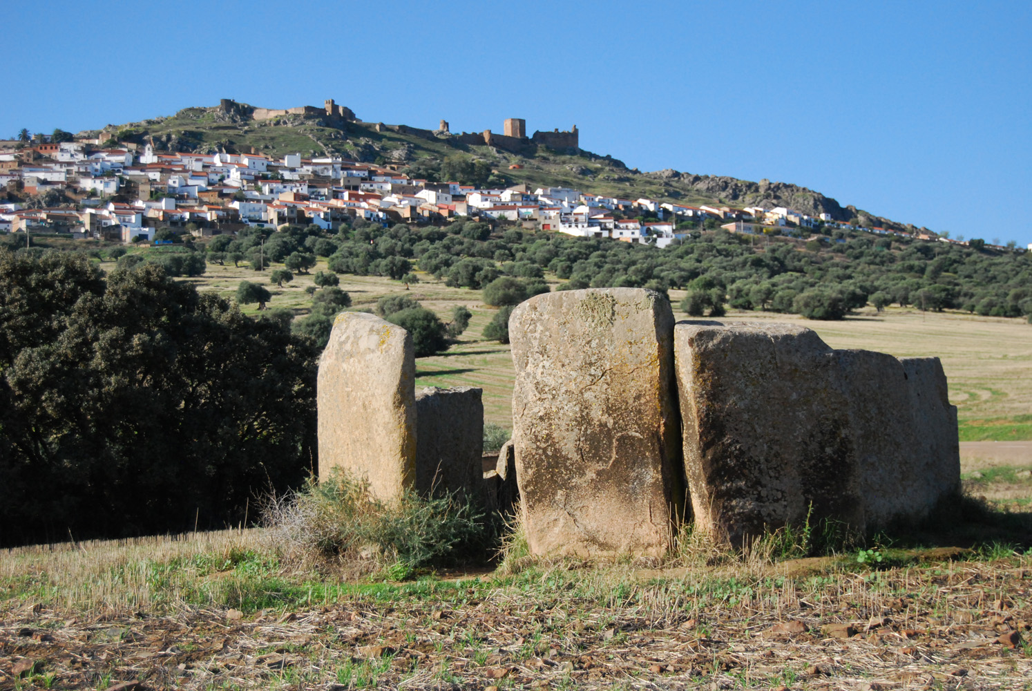 El monumento megalítico de Magacela lo encontramos al nordeste del promontorio en el que se levantó la población, en la zona conocida como Los Tejares.