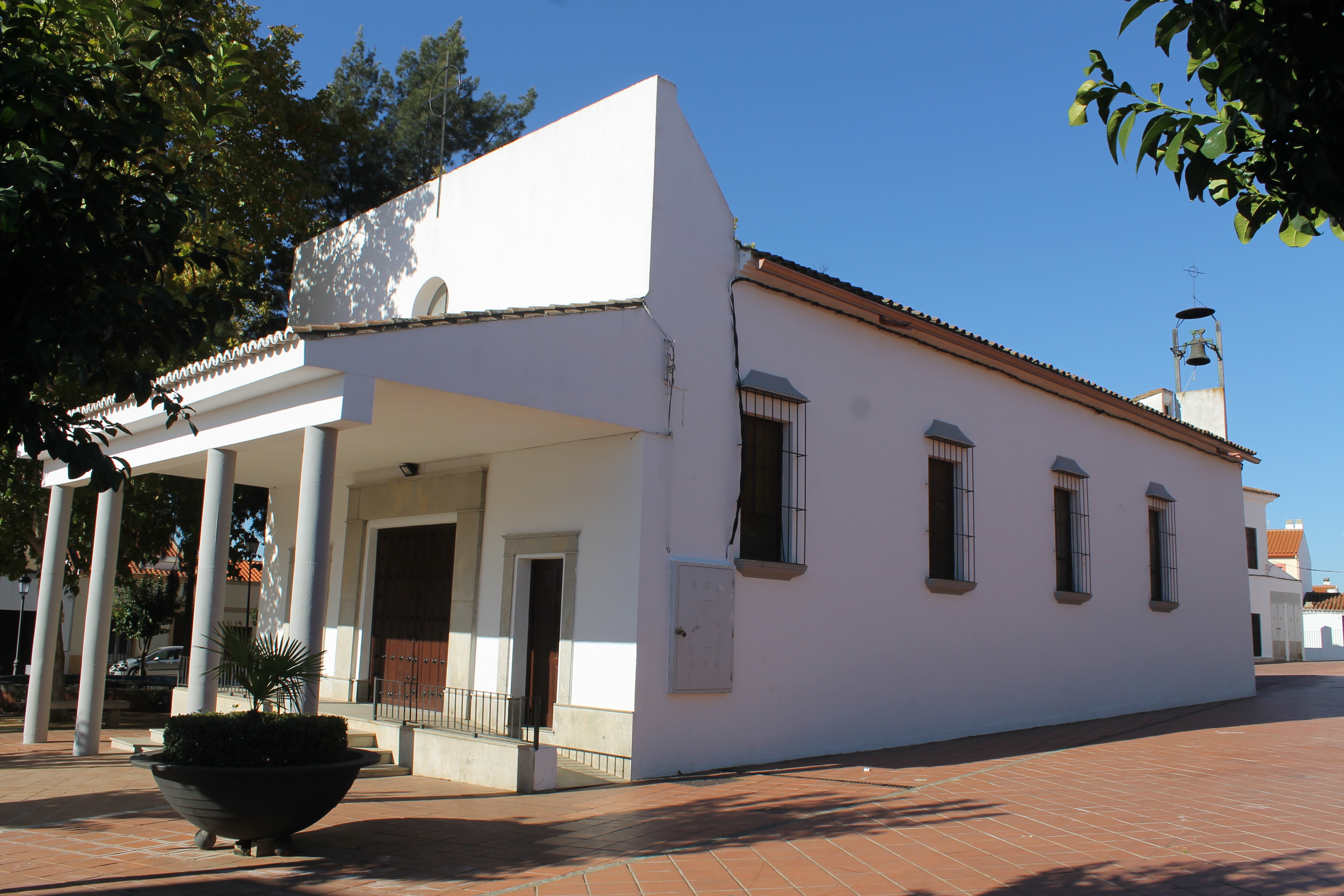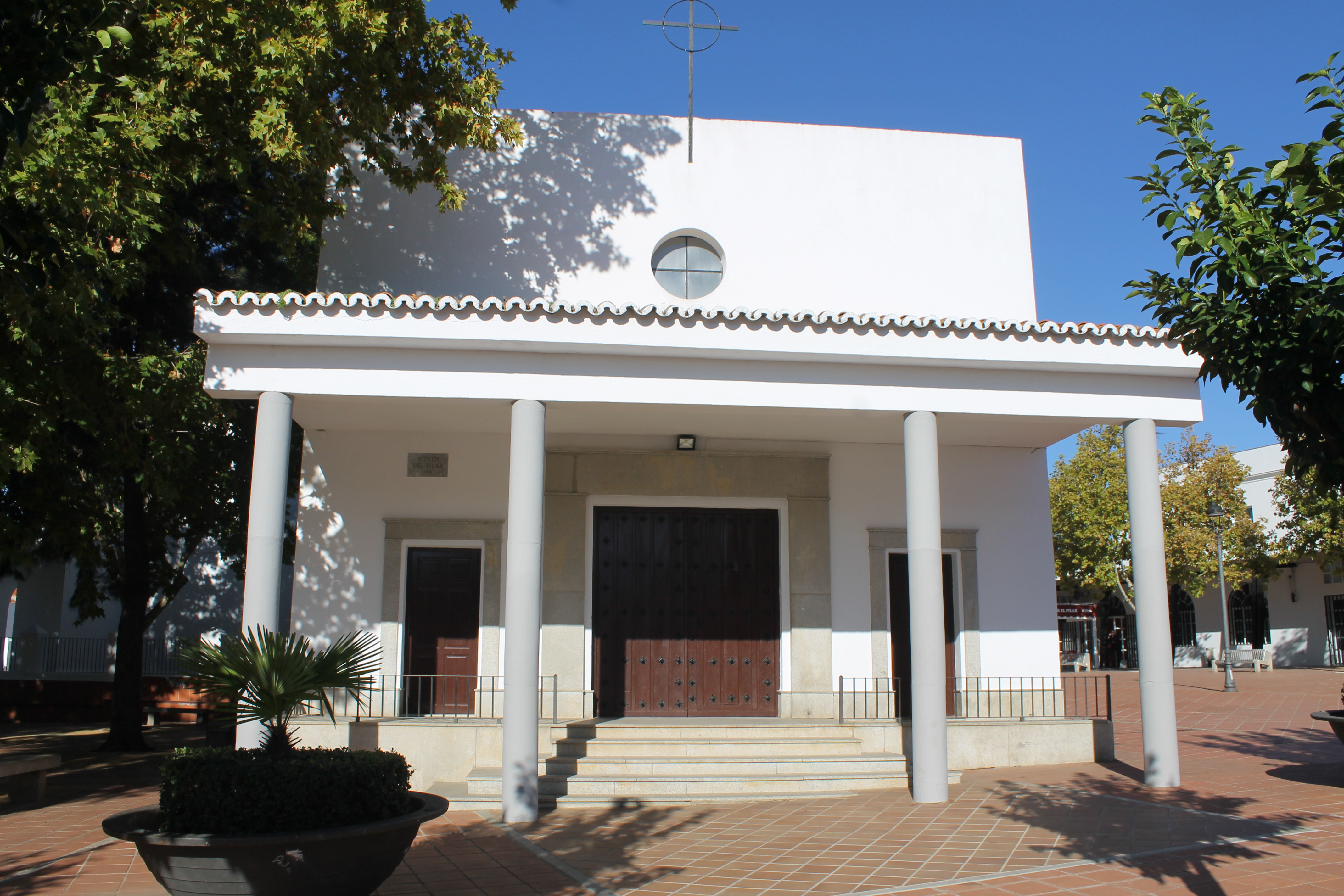 Está situada en la Barriada del Pilar, ubicada entre la Plaza del Pilar y la Plaza de Manuel García Mancera Mancerina. Durante los años 20, el Dr. D. Antonio Carrillo Arenas, instaló una clínica en la Barriada del Pilar. Al lado de ésta se construyó una capilla dedicada a la Virgen del Pilar, ya que su esposa era de Zaragoza. Con el paso del tiempo desaparecieron tanto la capilla como el sanatorio. El 2 de mayo de 1959 se empezó a edificar la actual Ermita. La edificación muestra la influencia de la arquitectura racionalista, consta de capilla mayor, una nave y sacristía.