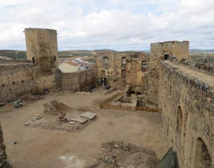 El castillo actual, con planta cuadrangular regular de proporciones moderadas, con torres en los ángulos, en un lugar accesible no muy elevado, junto a la población, responde al modelo de fortificación del siglo XV. Creemos que entonces se aprovecharían algunos elementos del viejo castillo existente anteriormente, como parte de la cerca primitiva que todavía en el siglo XVI se cita como barbacana, pero ya vieja y arruinada, aunque todavía conservaba algunos torrejones o cubos. Todavía conserva las cuatro torres angulares, pero ha perdido el lienzo del lado occidental, junto al cual a finales del siglo XV construyó su palacio el Maestre don Juan de Zúñiga.