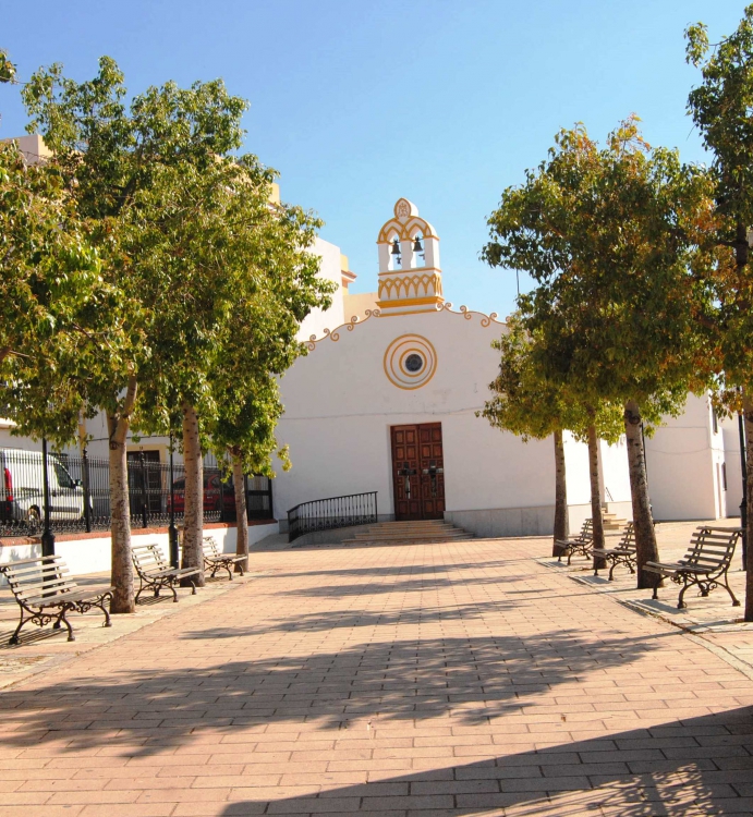 Es una realización de sabor marcadamente popular, encalada en blanco, ante la que, hasta fecha reciente, se localizó el emblemático tranvía distintivo del municipio, hoy colocado en otro emplazamiento.