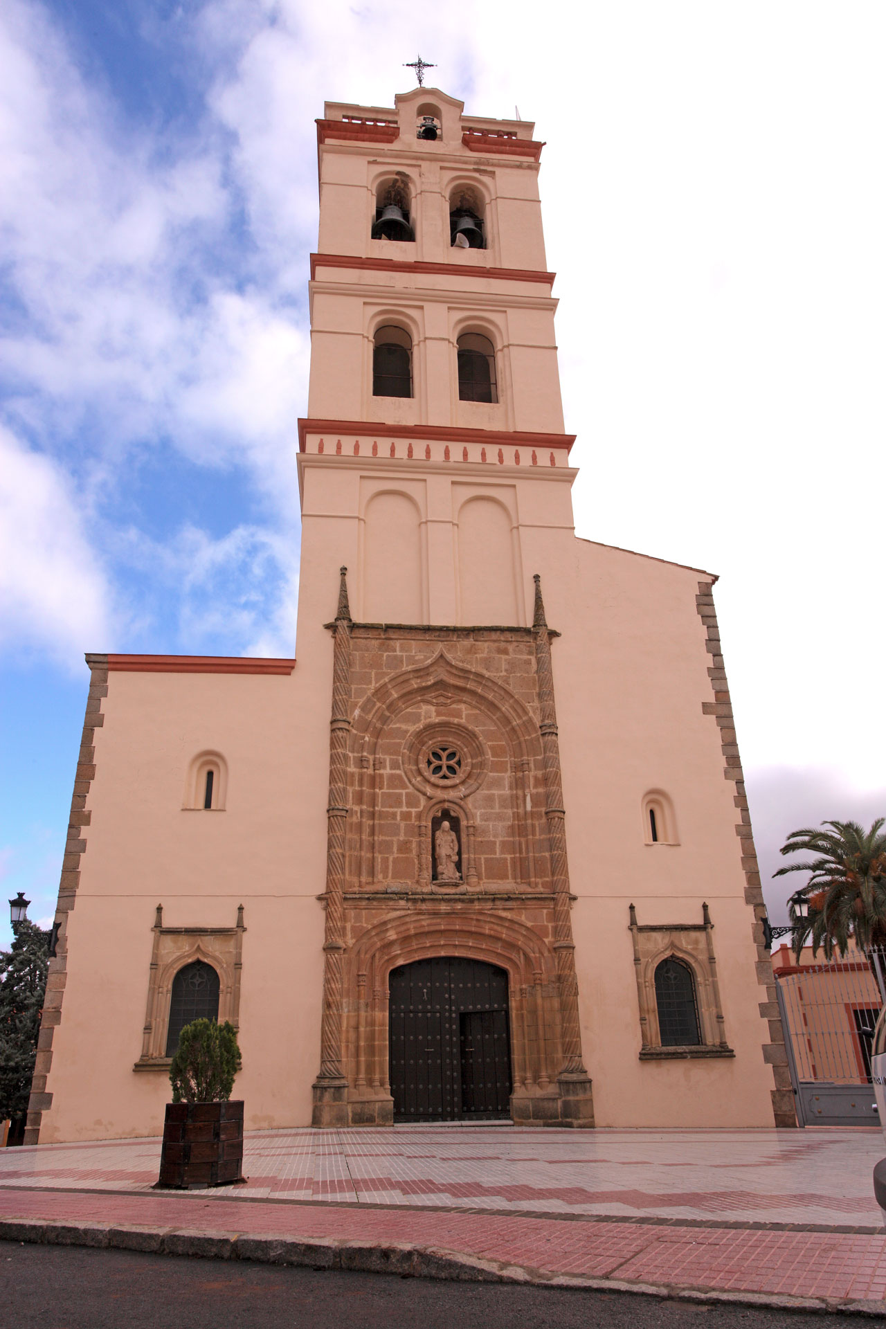 Edificio del siglo XV, aunque recientemente restaurado (1985), consta de una sola nave, de sencilla planta rectangular, cuya capilla mayor termina en forma ochavada, con los tres paños de la cabecera actualmente ocultos por el colosal retablo mayor, que reviste todo el frente hasta el elevado arco de la bóveda. En el muro del lado izquierdo o del Evangelio se abre la capilla de San Bartolomé, que a principios del siglo XVII fue abierta y construida a expensas de la Fundación instituida por el racionero de la catedral de Santiago de Compostela, Bartolomé Hernández Bueno, natural de esta villa, y que en el presente está dedicada a sagrario, conteniendo el retablo de San Bartolomé; frente a ella, otra capilla de menor alcance, que antiguamente fuera sacristía, hoy mostrando breve arco con reja y bellísima bóveda de crucería; atrás, junto al coro, se abre otra capillita con apenas más espacio que el ancho del grueso muro.
