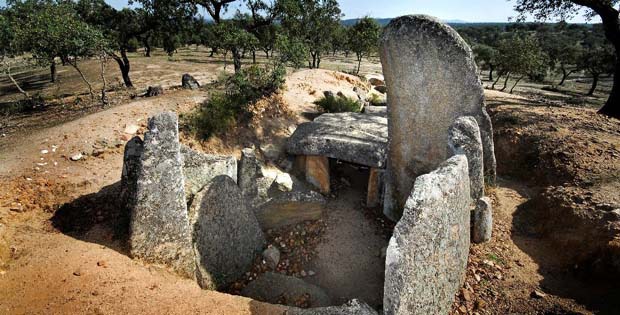 En sus proximidades, en dirección a Mérida, aparece uno de los conjuntos megalíticos más significados quizá de la Península, en el que cabe reseñar los dólmenes y sepulcros de Lácara, Carmonita, Loriana, La Moneda, Cuevas del Monje y el Moro, etc.