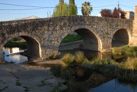 El puente, obra medieval de origen romano, se sitúa, en el extremo contrario que la parroquia, sobre el antiguo camino de Badajoz a Cáceres; esto es, en posición transversal respecto al crecimiento posterior del pueblo, lo que le confiere una situación actual extraña en el conjunto del caserío. Cuenta con tres arcos de piedra y cuerpo de sillería, ofreciendo una de las panorámicas más atractivas de la localidad.