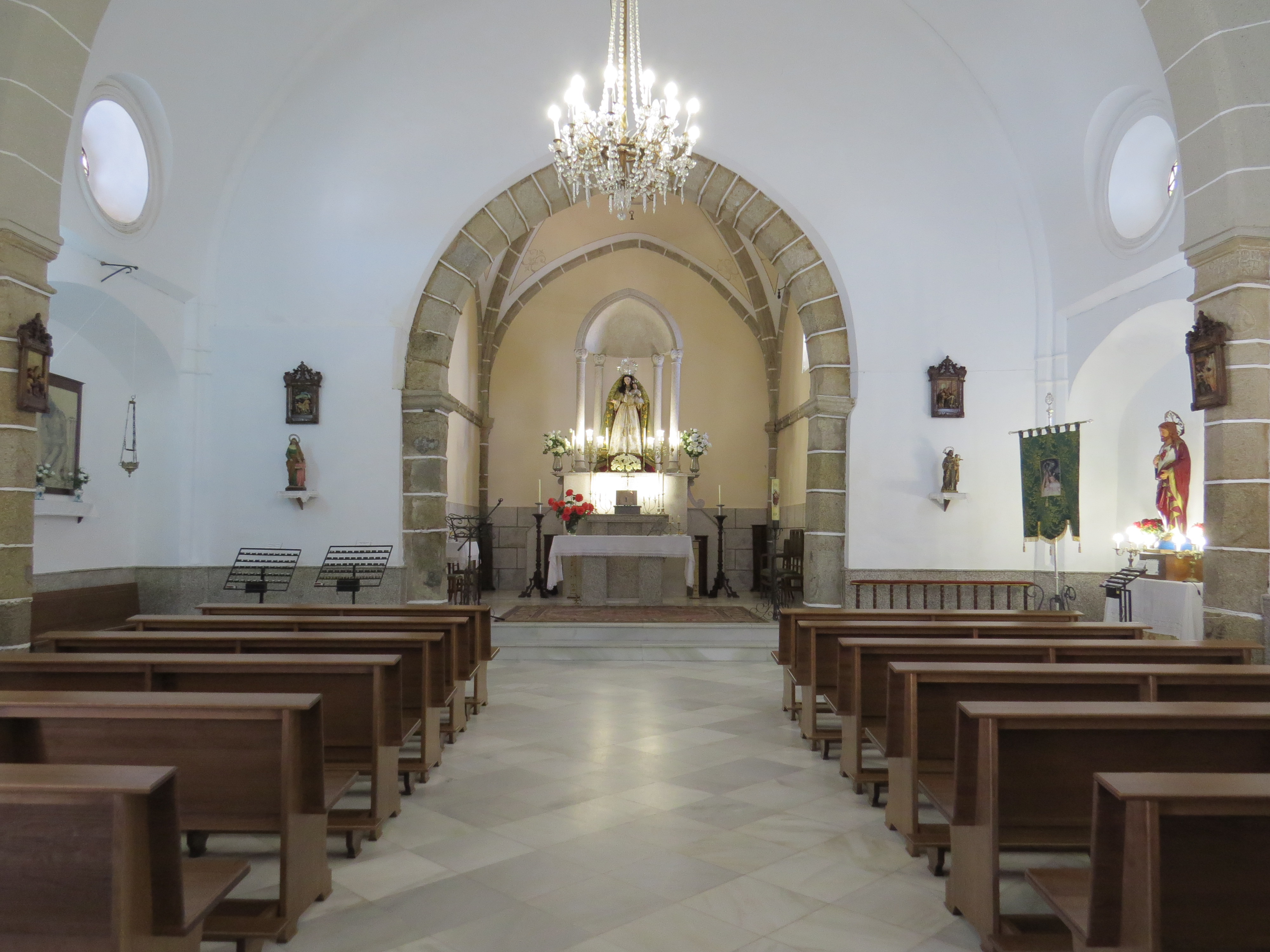 El interior de la ermita está compuesto por una nave de cinco tramos con arcos fajones sobre pilastras. El arco por el que se accede al altar mayor, es apuntado y la bóveda de cañón, restaurado, según una inscripción, en 1957. La capilla mayor, donde se encuentra la imagen de Nuestra Señora de Loreto, cuyas fiestas en su honor se realizan los días 7 y 8 de septiembre.