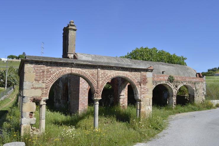 Tres etapas constructivas se pueden apreciar en las partes que aún no están totalmente arruinadas: al gótico corresponde el acceso al interior, formado por un arco apuntado de ladrillo, sobre jambas de granito con rudas impostas; renacentistas son las arcadas exteriores que rodeaban la entrada y barrocos los restos de algunas de las bóvedas. De todo ello destaca el atrio porticado compuesto por arcos de medio punto hechos de ladrillo que descansan sobre elegantes columnas de granito con sencillo capitel. Nada se sabe de su fundación; mas se piensa que existía en época de los Templarios, porque en la Edad Media existían ermitas dedicadas a San Lázaro en casi todos los pueblos comarcanos destinadas en su mayor parte a lazaretos en los que se acogía a los leprosos. En 1511 estaba abierta al culto y en el altar mayor había una representación del misterio del Santo titular; poseía ciertas tierras y una huerta.