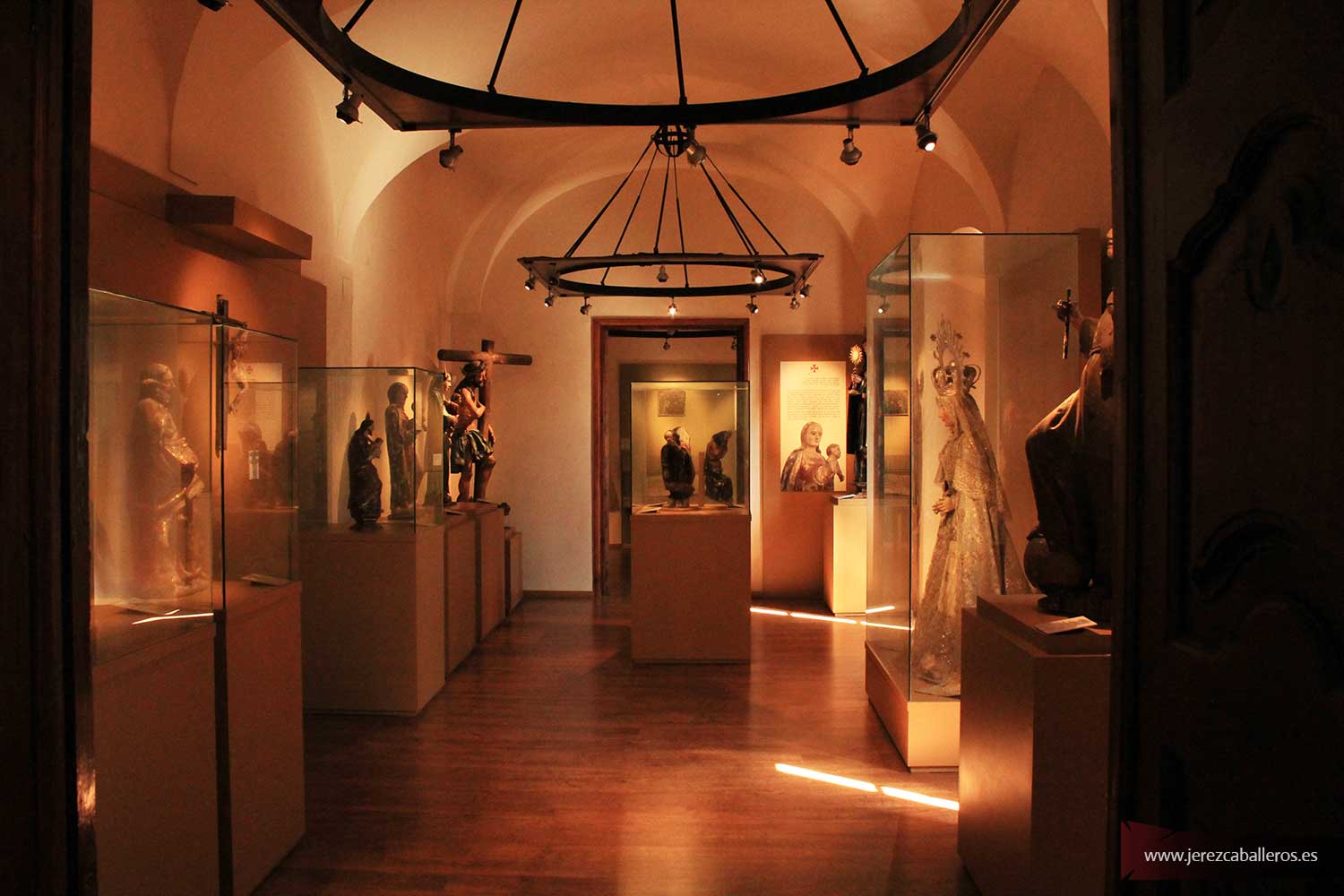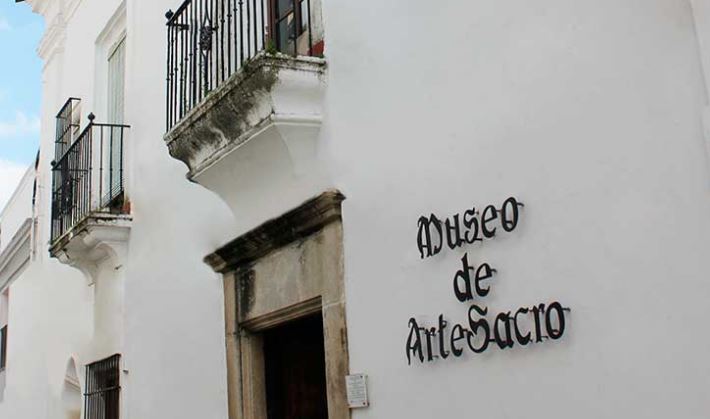El rico patrimonio que se conserva en las capillas, ermitas y demás templos extendidos por toda la Península Ibérica, se distingue por la belleza y calidad de sus pinturas, esculturas y las soberbias piezas de orfebrería que aguardan pacientes la mirada sorprendida del viajero bajo un espléndido manto de piedra consagrada. Jerez de los Caballeros se exhibe ahora orgullosa en este Museo, con los tesoros sacros custodiados durante siglos en el interior de sus templos. Para mostrar esta riqueza ha elegido uno de los edificios más representativos de la arquitectura noble: El Palacio de la Vicaría, que debe su nombre a haber sido en su día la residencia del Vicario General de la Orden de Santiago. Sus líneas sobrias, severas y funcionales, son claro ejemplo de la tendencia arquitectónica del Barroco Español. La estructura se simplifica en sus espacios y acabados, pero se viste con la riqueza de su mobiliario, pinturas, tapices y joyas de oro y plata.