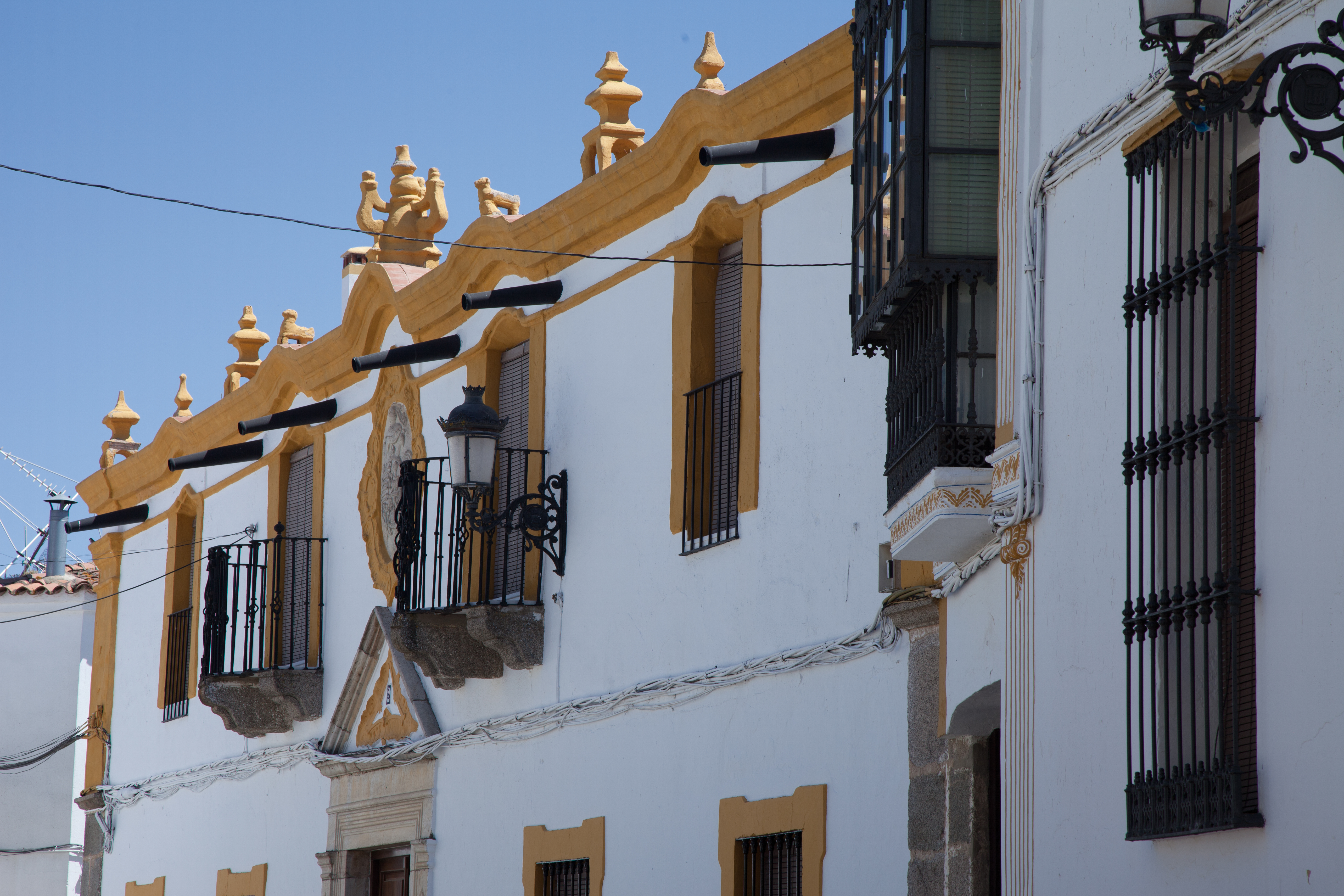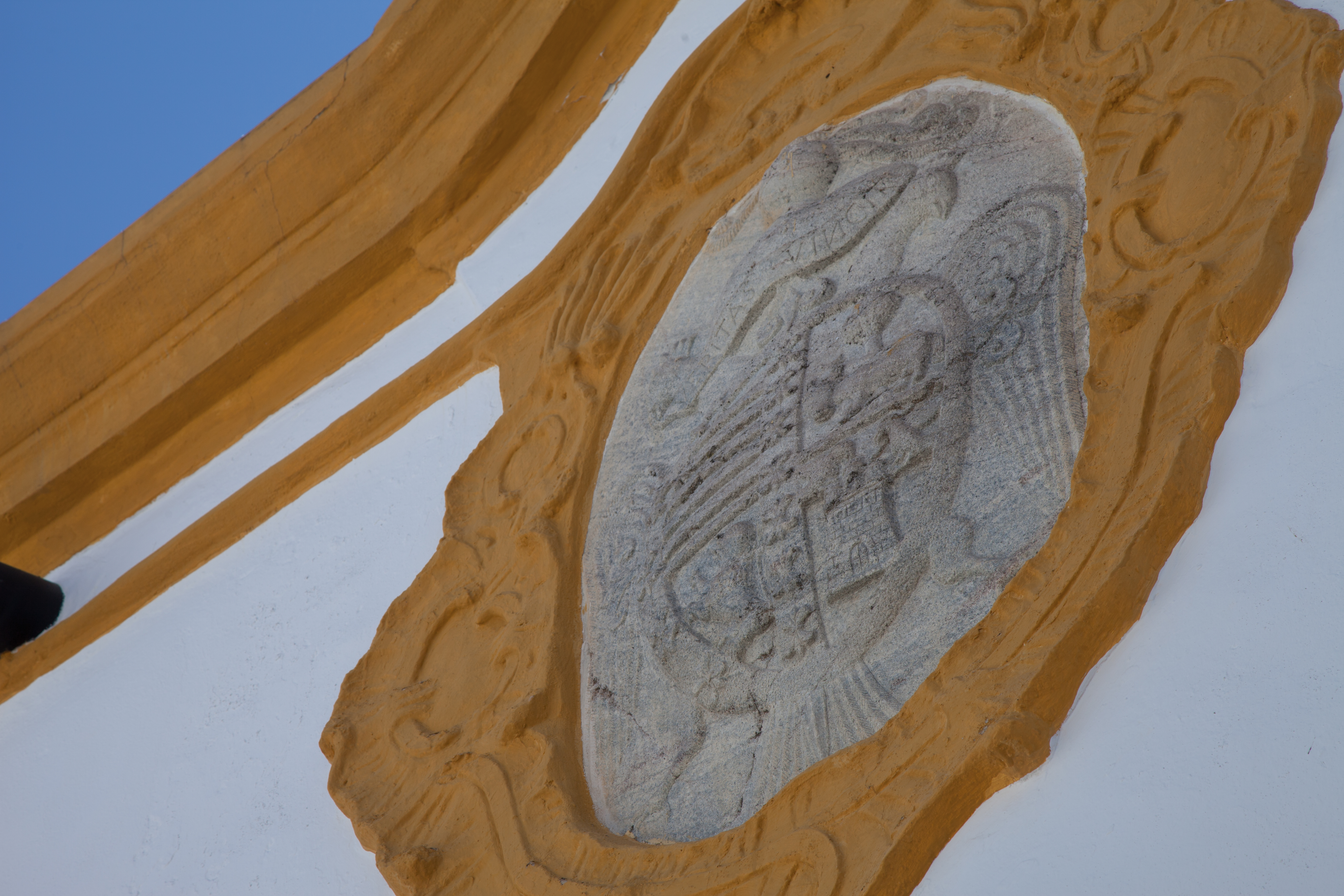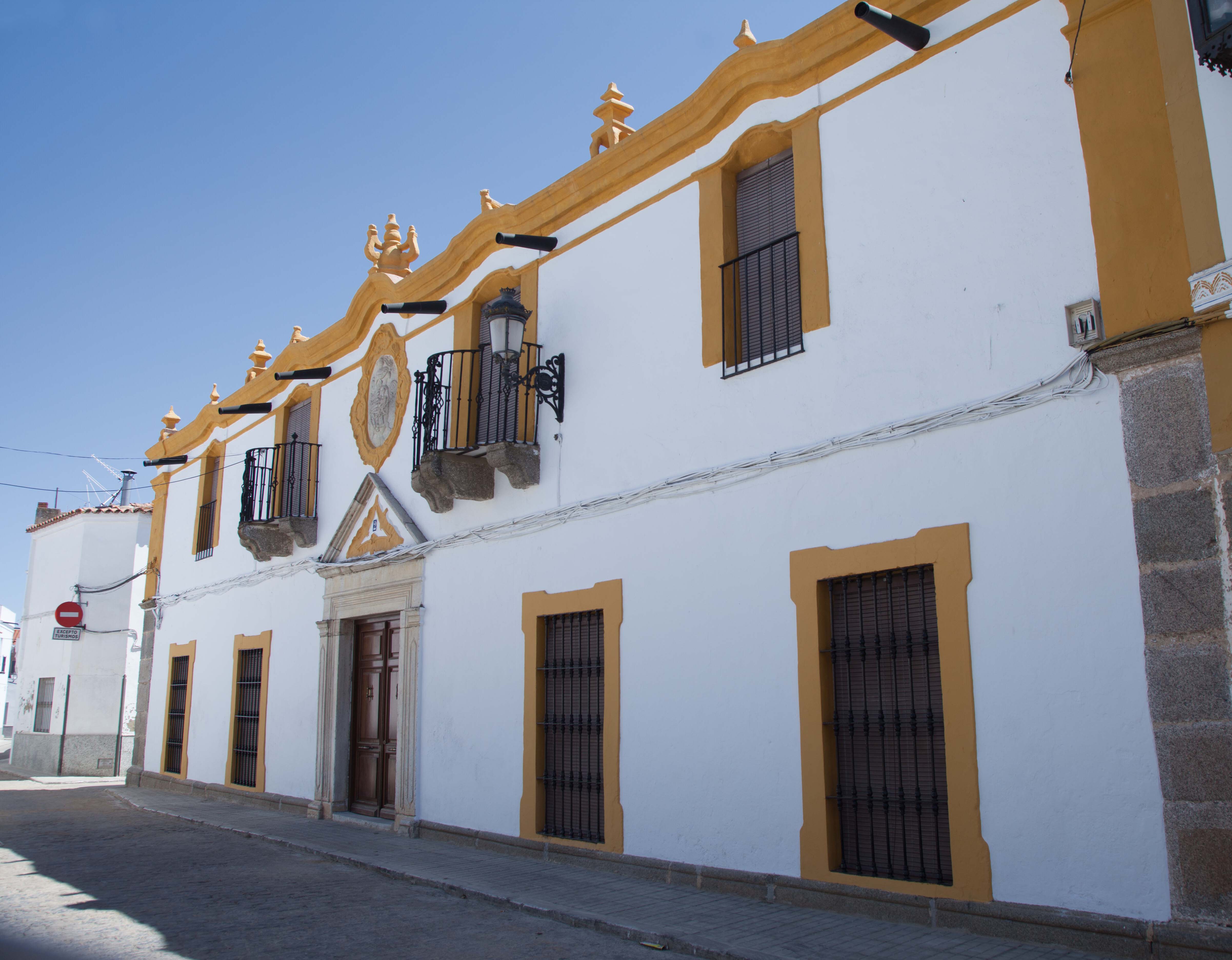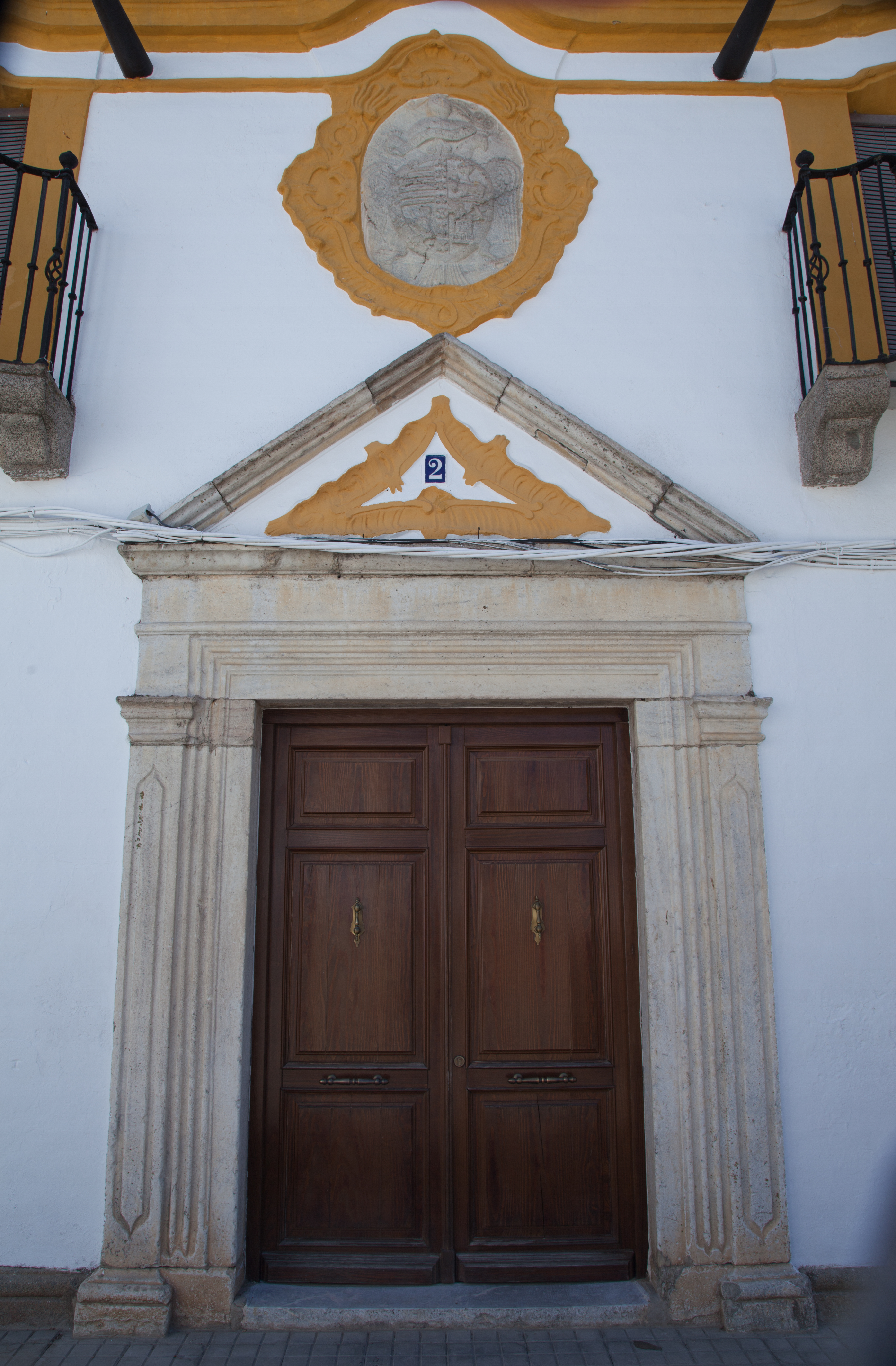 Su fachada es rematada en la parte superior por una moldura que marca su cornisa resaltando los huecos inferiores mediante ondulaciones en su trazado