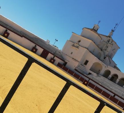 Adosada a la izquierda del Santuario, se encuentra la Plaza de Toros, una de las plaza de toros más originales de la geografía de España. De una forma rectangular. Por el lado oeste se emplaza un pórtico, compuesto por 10 arcos de medio punto, sustentados por 11 pilares, que data del siglo XIV, considerada por los estudiosos de Plazas de Toros como la 1ª más antigua de España. El palco de la presidencia, cubierto y protegido con un balconcillo de forja y una pequeña grada para la banda de música y encima de esta grada una ventana de forja, que era desde donde los Frailes o el Cura presenciaban los festejos.