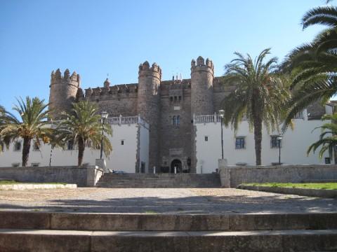En 1.437, Lorenzo II Suárez de Figueroa, dos años después de su matrimonio con María Manuel, descendiente de la realeza castellana, inició la construcción de un Alcázar en PalacioDuquesdeFeriaZafra. Las obras, concluidas en 1.443, dieron como fruto un edificio en el que se buscaba más que la fábrica de un baluarte, la consecución de una residencia señorial. Su regularidad y precisión edificatoria concuerda con las construcciones palaciales góticas del siglo XV, si bien en cuanto a la decoración responde al gusto mudéjar. Muy interesantes son las pinturas de la cámara de los esposos, situadas en la torre del Homenaje, así como los techos holladeros del salón principal de la planta baja. En época del segundo conde de Feria se completó el edificio con las techumbres dispuestas en la sala Dorada y en la capilla.