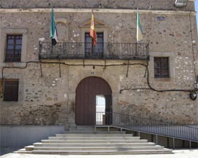 Su construcción es de mampostería y piedra. Blasonado con un granítico escudo. La puerta de entrada queda definida por un arco de medio punto de cantería, encima del cual se abre una ventana rematada en frontón triangular. Un gran balcón sobre repisa de hierro recorre la mayor parte de su fachada. Otros vanos con dinteles de cantería repartidos por la fachada sin guardar simetría y un antepecho con molduras, contribuyen a romper el estatismo de la fachada.