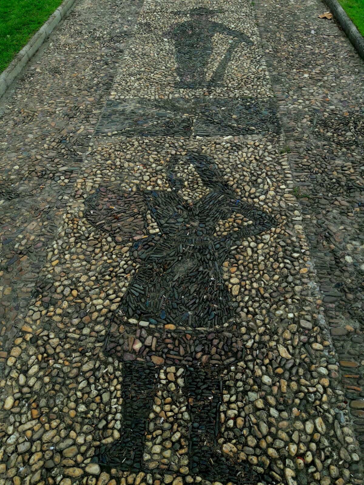 Javier Martínez Ventas embelleció el suelo del Paseo de la Constitución con mosáicos de piedras de rio recrean de esta manera plasmó todo este mundo, derrochando imaginación e ingenio en cada una de las escenas retratadas.