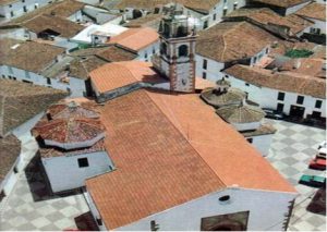 Su obra comienza en mitad del siglo XV, destacar su portada principal, de trazado gótico mudéjar y la capilla mayor de planta poligonal cubierta con bóveda de crucería. La fachada principal consta de un arco apuntado con arquivoltas decoradas con motivos geométricos sobre baquetones cilíndricos, enmarcada en un alfiz. La última arquivolta da lugar a un arco conopial rematado con una Cruz de Santiago.