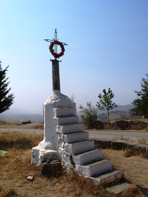 Aprovecha restos paganos de la romanidad. Construida en ladrillos. la cruz está clavada en una columna romana