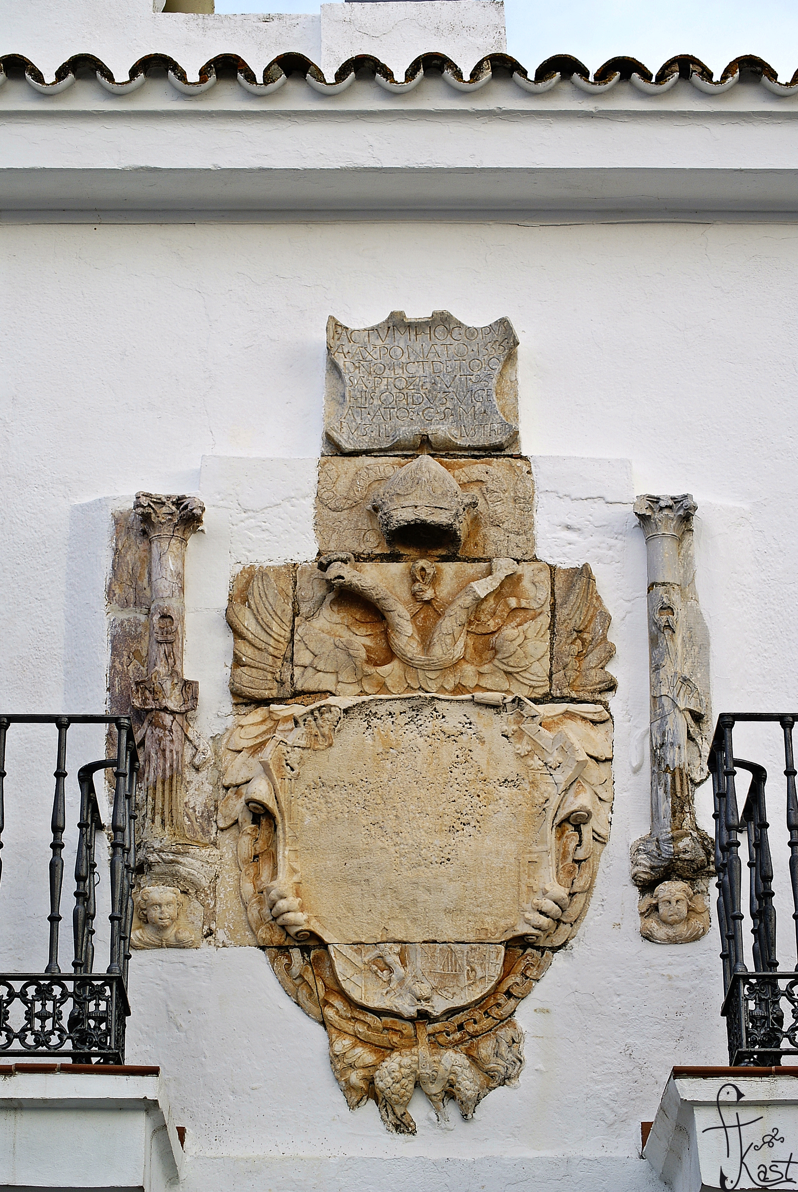 En el escudo que hay en la fachada del Ayuntamiento encontramos escrito en latín: “Se hizo esta obra en año del nacimiento de Cristo de 1555, siendo gobernador el licenciado de Tolosa, para que con ellas progrese esta villa y le dé esplendor, la Sacra Católica Real Majestad”. Su escudo rematado por la corona imperial está orlado por una inscripción apenas legible. Borrados sus cuarteles por disposición de las Cortes de Cádiz, sobre él se grabó un texto que dice “Plaza de la Constitución Año 181...”, nombre que mantuvo la plaza hasta bien entrado el s.XX.