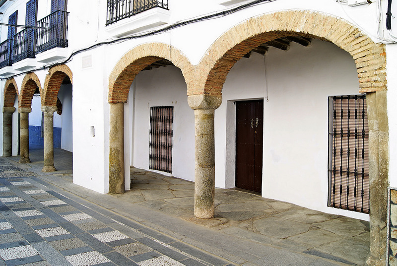 Se compone de tres arcos frontales sobre columnas de granitos y pilar central mampuesto, con techo de madera y suelo mitad de lajas de pizarra y mitad de baldosines. Debió tener más arcos de los conservados, algunos de los cuales se integran en las casas vecinas donde se prolongaba la arquería de la Plaza, que estuvo porticada, al menos en tres de sus cuatro lados. En ellos se instalaron puntos de ventas cuando tenía lugar el zoco o mercado semanal concedido en1274 con el Fuero de población, en el que se fijaron los martes de cada semana para dicho mercado. Actualmente hay mercadillo el viernes de cada semana.