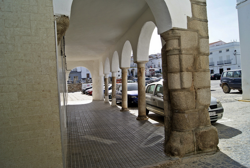 Consta de cinco arcos frontales de medio punto sobre columnas de mármol y dos arcos laterales que dan entrada a la arquería y descansan en esquina de mampuesto uno y de sillares de granito otro. Su techo está cubierto con mortero y su suelo, de baldosines.
