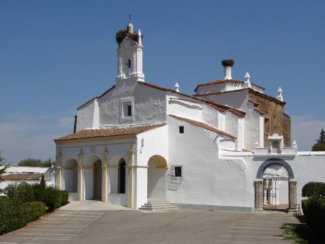 Da acceso a la ermita un soportal de tres arcos de medio punto al frente y otro lateral, construido en 1833. El altar mayor está presidido por un gran retablo de estilo barroco de autor desconocido. Fue tallado, dorado y pintado en la segunda mitad del s. XVIII. En su camarín se aloja la imagen de candelero de la Virgen de los Remedios, del s.XVII. En los muros laterales se ubican cuatro altares con otros tantos grandes lienzos, dedicados a San Francisco, San Antonio, San José y San Nicolás de Bari. Son copias de escuela sevillana, de obras de autores como Herrera el Joven o Murillo. La ermita, de planta de salón, cuenta con coro alto y sacristía en el lado de la epístola. Al exterior luce espadaña de un solo vano para campana.