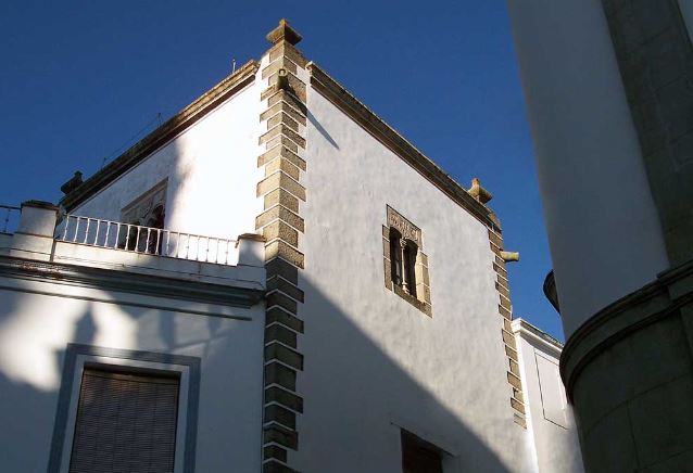 Conserva rasgos de estilo gótico, siglo XV. Del antiguo edificio persiste una gran torre de planta cuadrangular con sillares de granito en las esquinas. En la fachada que dan a la plaza de San Miguel, se abren vanos, con parteluces de mármol y los blasones familiares. En una de las ventanas hay una inscripción en la que aparece como ordenante de la obra el citado Bachiller y como fecha de terminación 1470. De la familia Martínez de Logroño se sabe que provenía de La Rioja, llegó a Jerez en el siglo XV, y desde ese momento entroncó con los Vargas, Silvas, Maraveres y otros linajes importantes de la localidad. Sus miembros fueron fundadores del convento de Gracia y benefactores de San Miguel en donde están enterrados. Estos señores fueron regidores perpetuos de la ciudad.