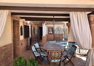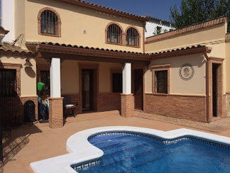 Realmente la casa de divide en dos casas una que denominamos casa de la piscina con dos habitaciones, dos baños, cocina, cuarto de estar con chimenea y un precioso porche y acceso a la piscina.Un patio grande con un garaje y barbacoa de obra.