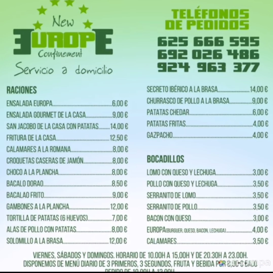Servicio de comida a domicilio raciones, bocadillos. Viernes, Sábados y Domingos de 10,00h a 15,00h y 20,30h a 23,00h. También disponemos de Menú diario.