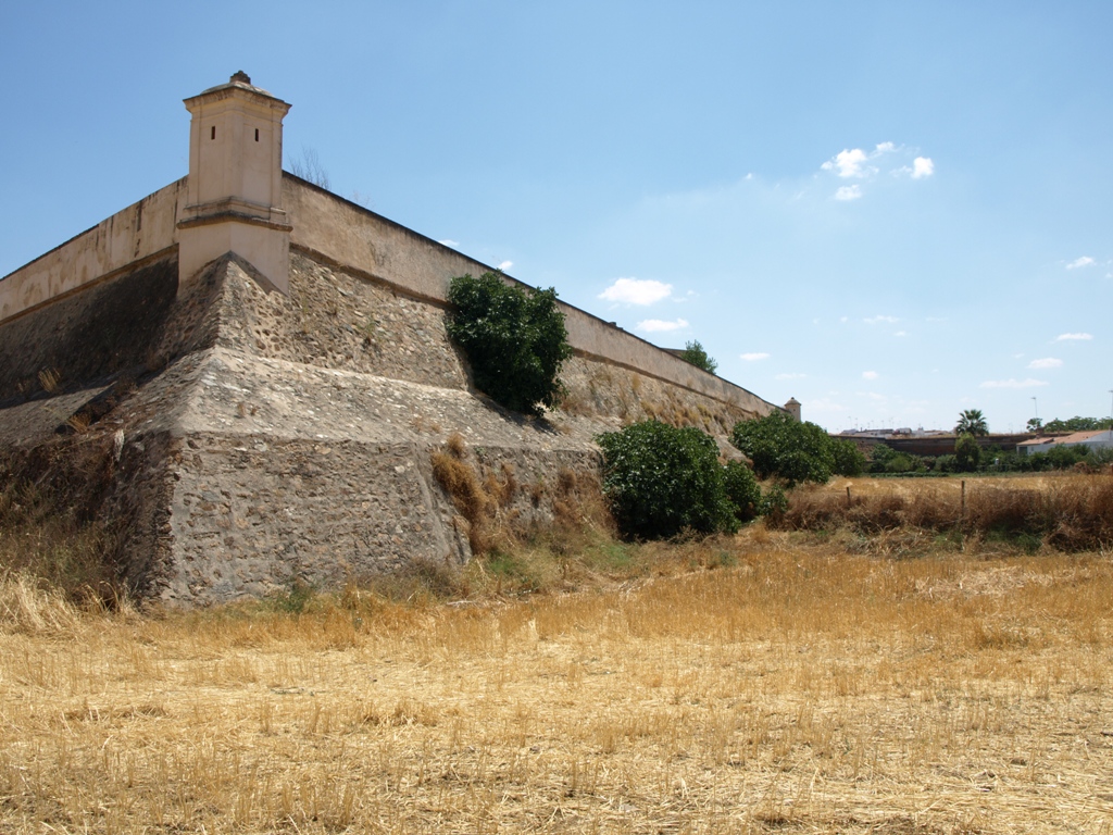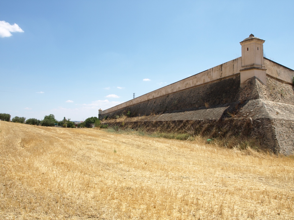 La escarpa, de piedra y cal, se conserva en buen estado tanto en su frente como en los flancos. Los tres ángulos flanqueados, el de la cara y los dos de las espaldas, conservan sendas garitas bien conservadas, parcialmente restauradas.