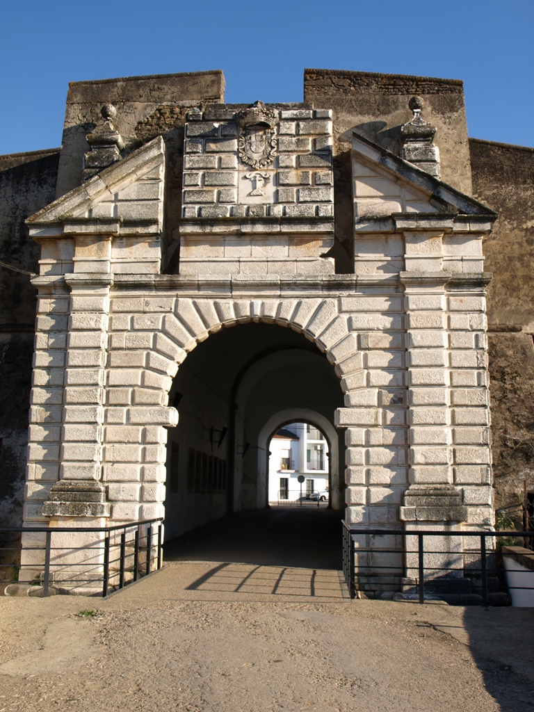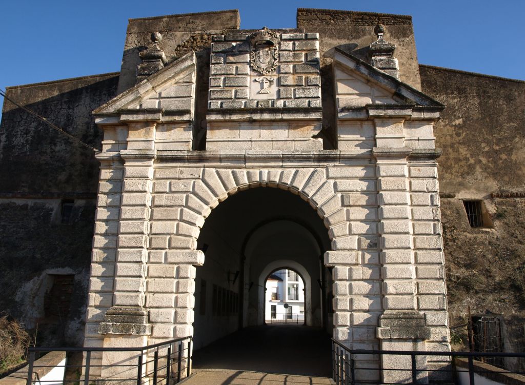 Forma parte de la fortificación abaluartada, construida en el siglo XVII para las Guerras de Restauración. Esta muralla poseía tres puertas, de la que sólo se conserva la más monumental, la del Calvario, orientada hacia Portugal.