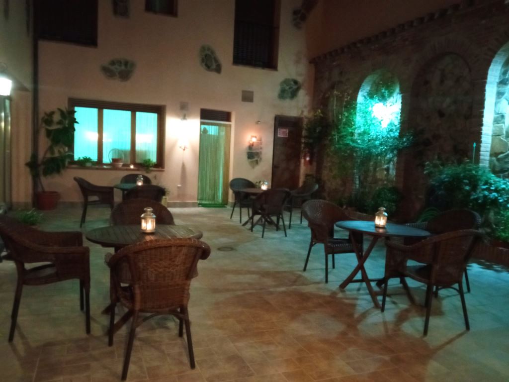 Al entrar al Hotel nos encontramos con una de las típicas calzadas alangeñas, en la que sentarse para desgustar aperitivos y raciones es todo un placer.