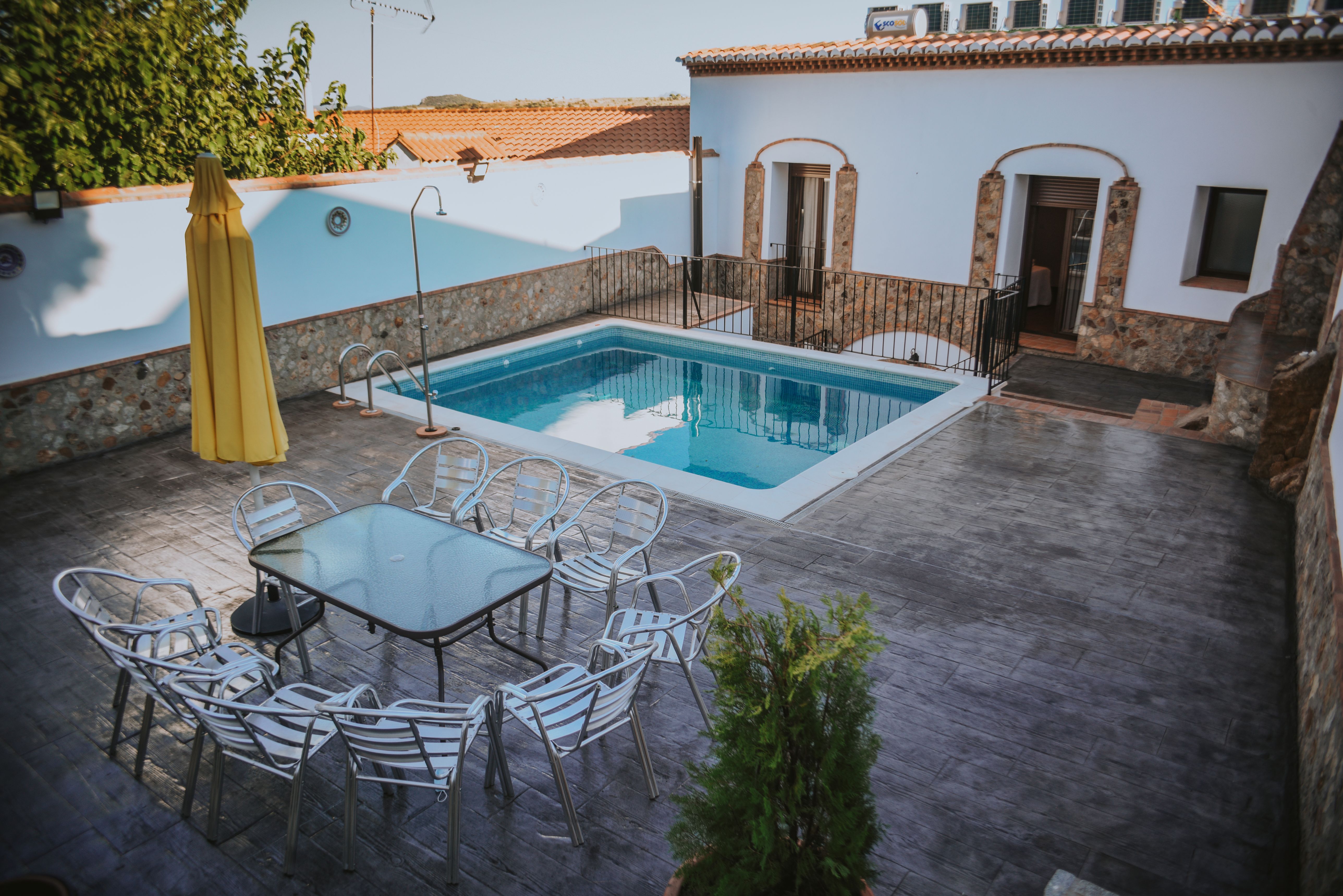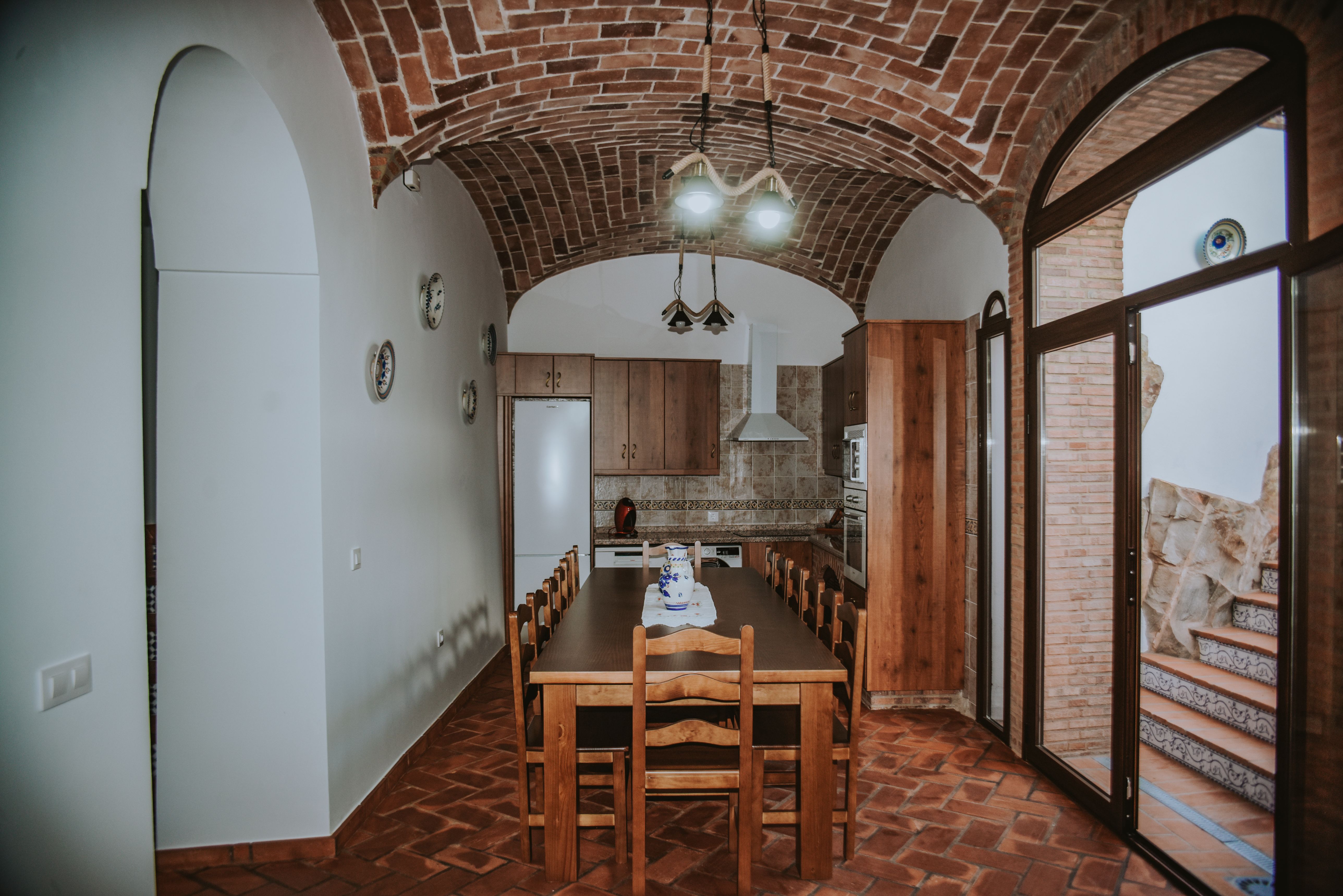 La casa rural consta de un extenso salón comedor, una amplia y funcional cocina con salida directa al patio con todo tipo de electrodomésticos, 7 dormitorios dobles con sus respectivas TV y 7 cuartos de baño completos.