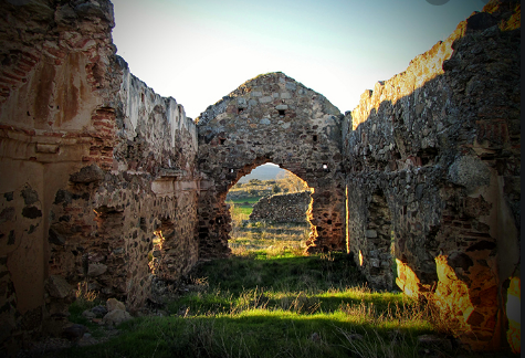 Su portada de acceso nos da una pista de la cubierta a dos aguas que cerraba el edificio, lamentablemente perdida por completo. En su interior, quedan pocos restos de su decoración mural.