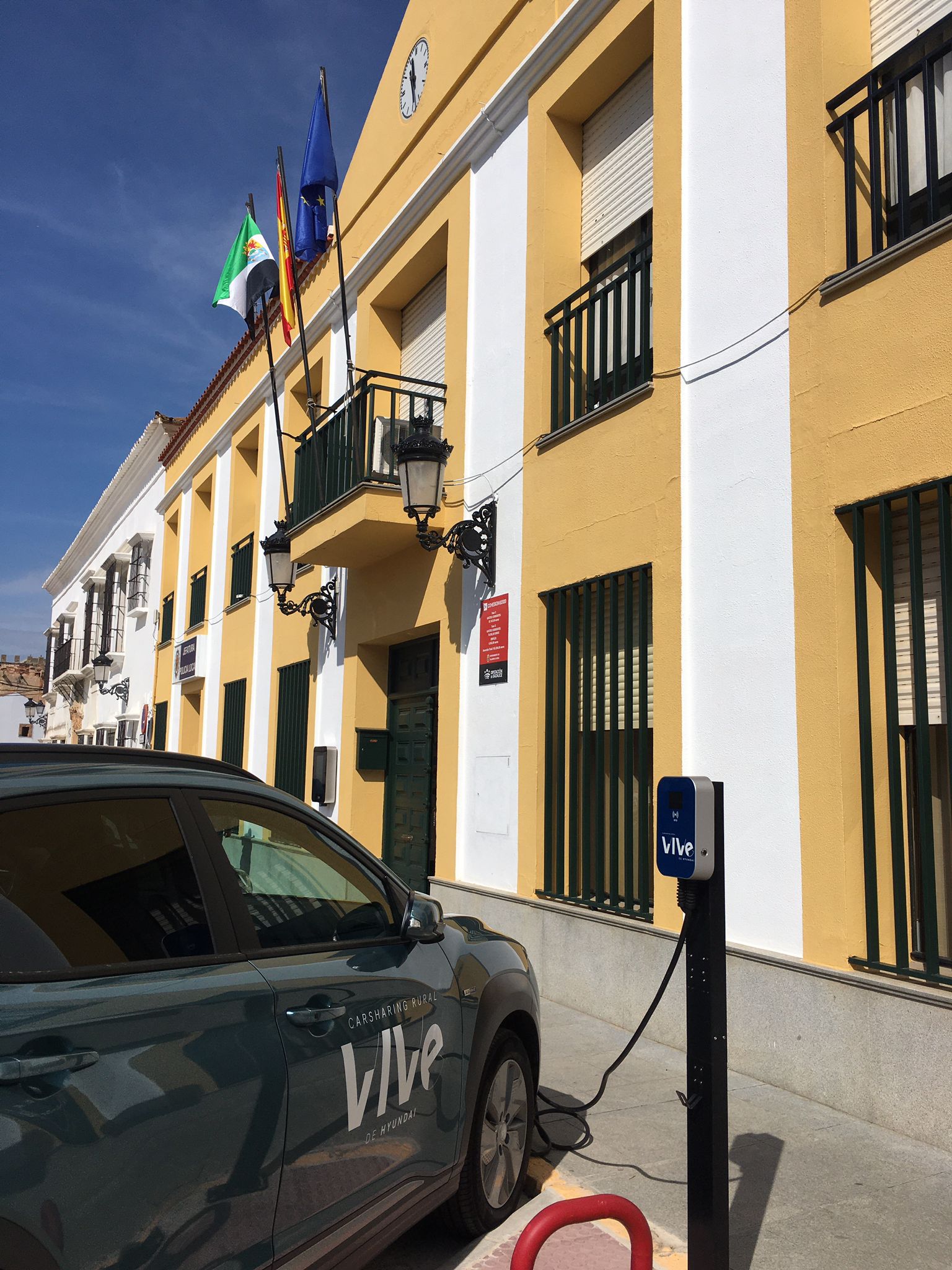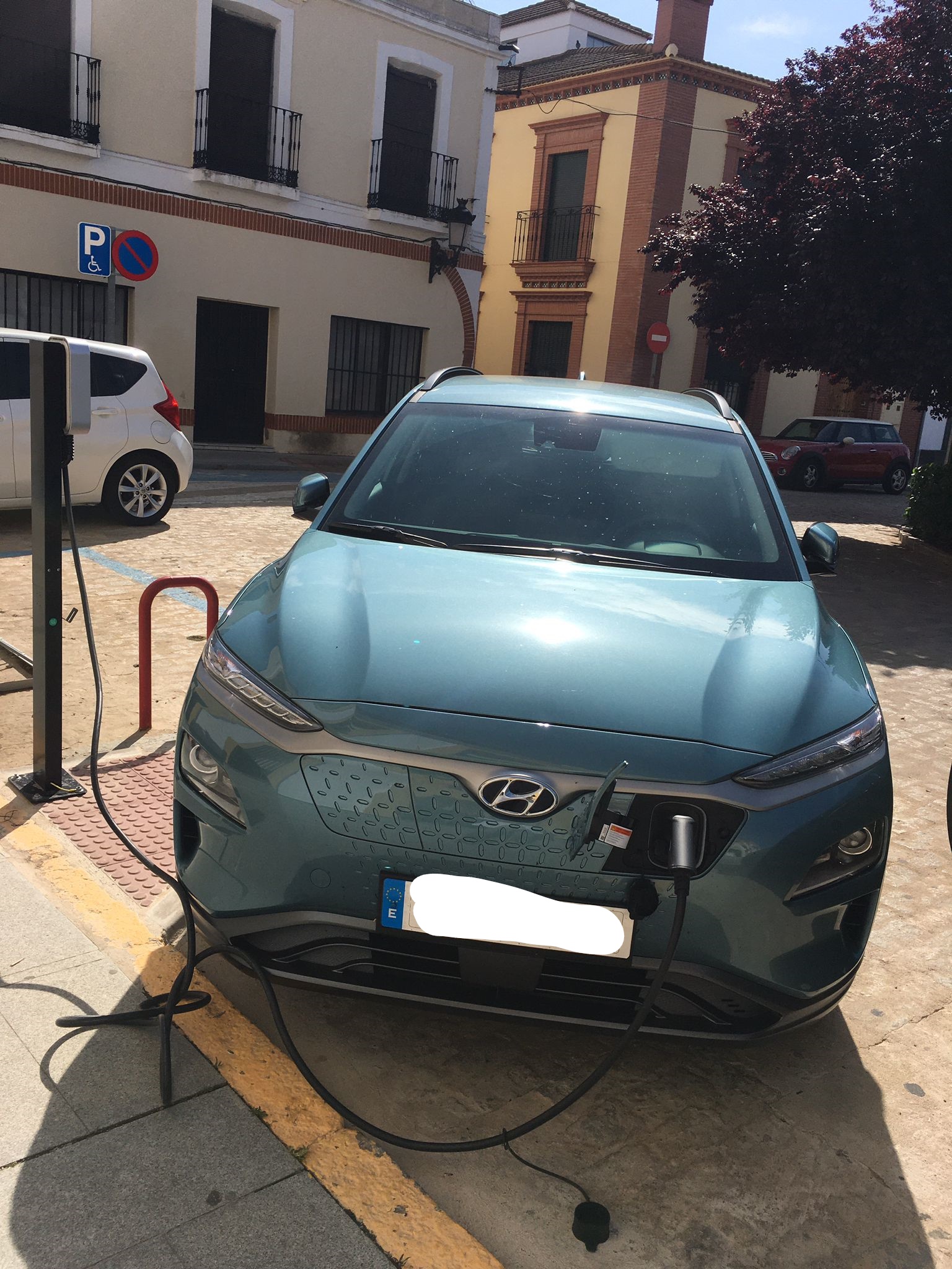 Punto de carga para coche electrico HyundaiVIVE y plaza de parking reservada para el mismo.