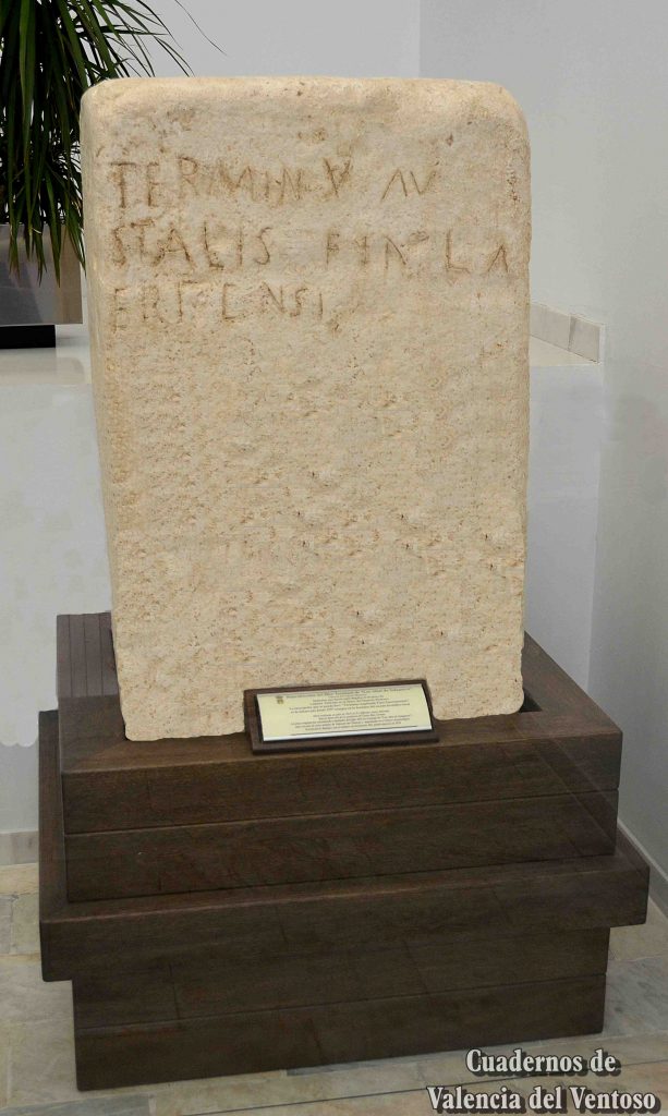 TERMINUS AUGUSTALIS FINIS EMERITENSIUM”, inscripción que podemos leer en el hito de piedra encontrado en el siglo XIX cerca del casco urbano de la población y que indicaba que hasta aquí llegaba el término de Augusta Emérita en la época del Imperio Romano.
