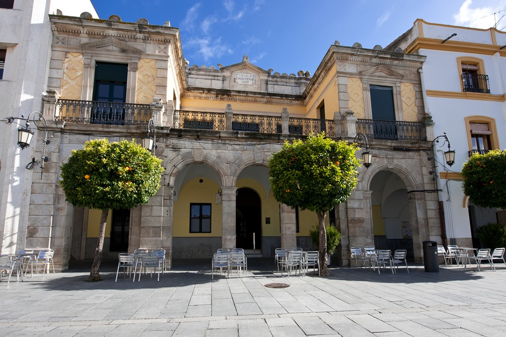 La nueva sociedad burguesa local, surgida al rebufo de la construcción del ferrocarril, y las tradicionales familias de terratenientes, crearon la Sociedad Círculo Emeritense. Encargaron un edificio de corte clásico para albergar su sede. Se concluyó en 1867, como reza una cartela encastrada en el frontón, rodeado de acróteras, que remata el segundo cuerpo del edificio.